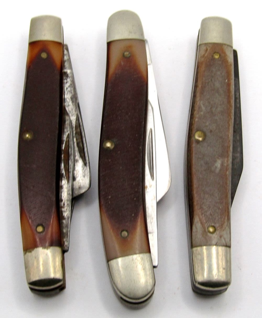 3-Blade Schrade+ 88OT, 3-Blade Schrade NY USA 34OT, 2-Blade Schrade 33OT; Used.