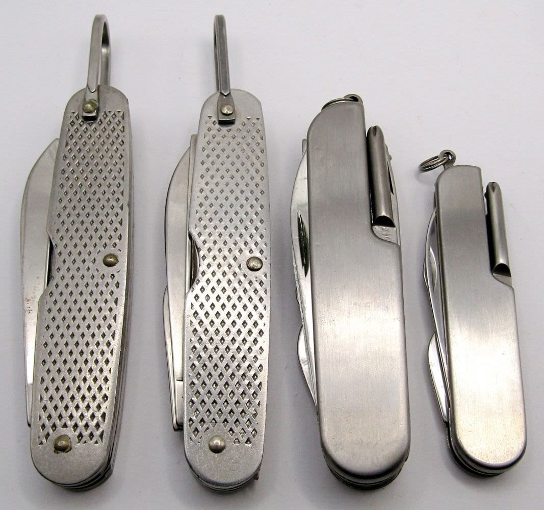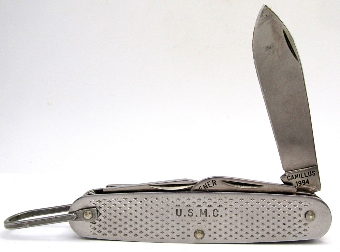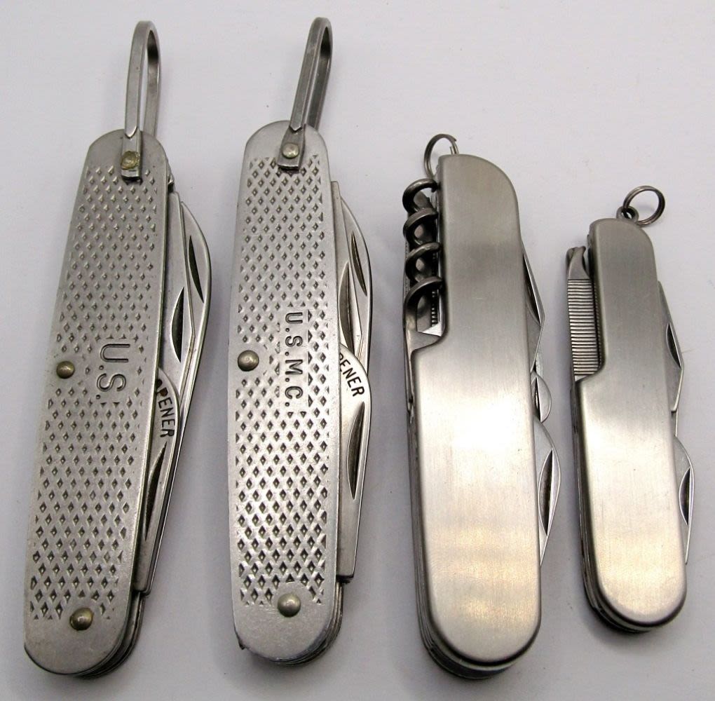 (2) USMC Camillus 1974 & 1994 Blade Multi-Tools, (2) Stainless China Multi-Tools; Like New & Used Conditions.