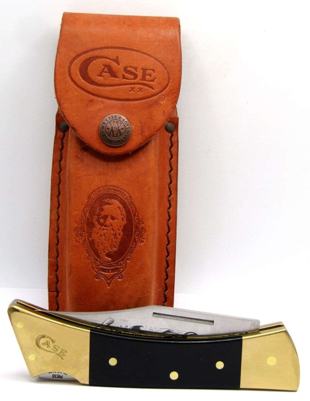 Lockback Single Blade Pocket Knife in Leather Sheath, NEW condition.