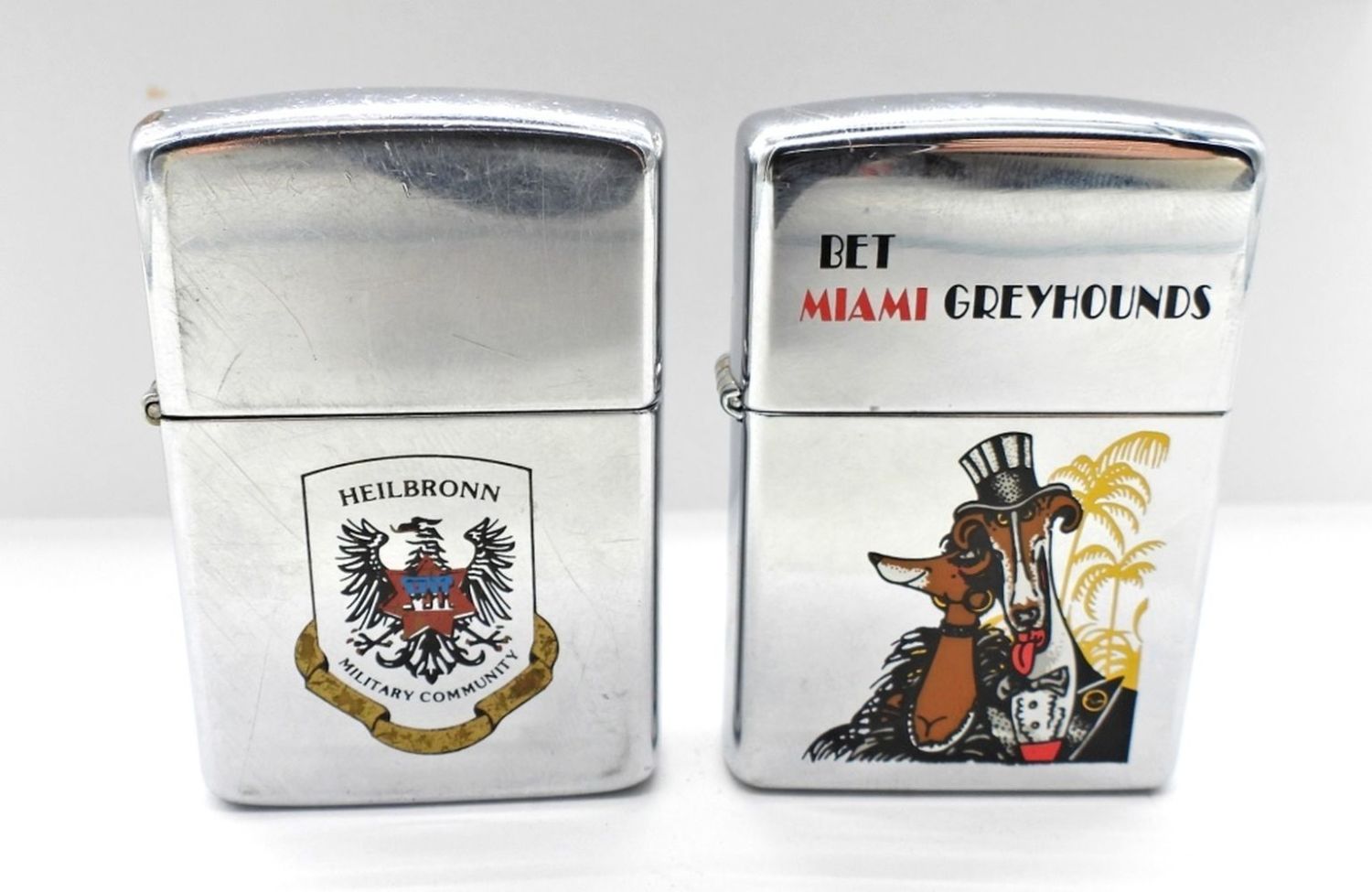 1- 1995 WITH BET MIAMI GREYHOUNDS ON THE FRONT UNFIRED IN-BOX, 1-1989 WITH HEILBRONN MILITARY COMMUNITY