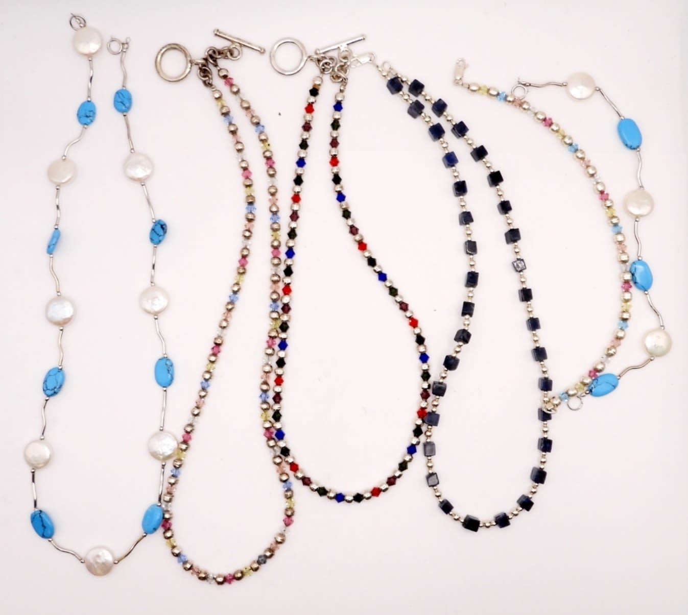 Various styles and colors. Necklaces in various lengths 16-18 inches. Bracelets are 7 inches. Very cute set!! (DWT 47.1)