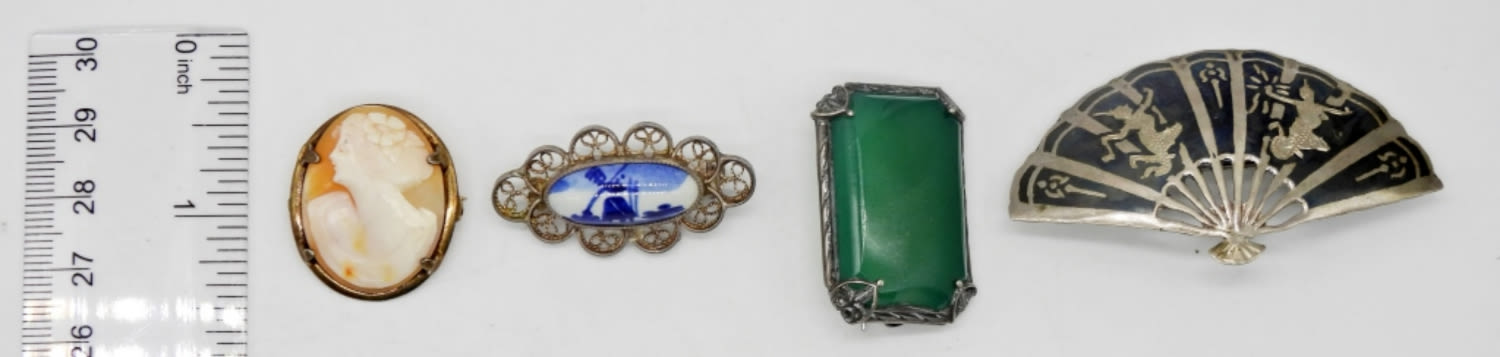 CAMEO PIN, BLACK ONYX, SMOOTH NATURAL STONES; STAMPED STERLING, 925; 16 DWT