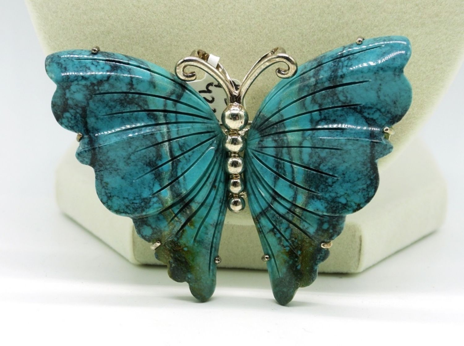 Gorgeous carved butterfly pendant measures 2.5 inches across by 2 inches long. Absolutely beautiful! (