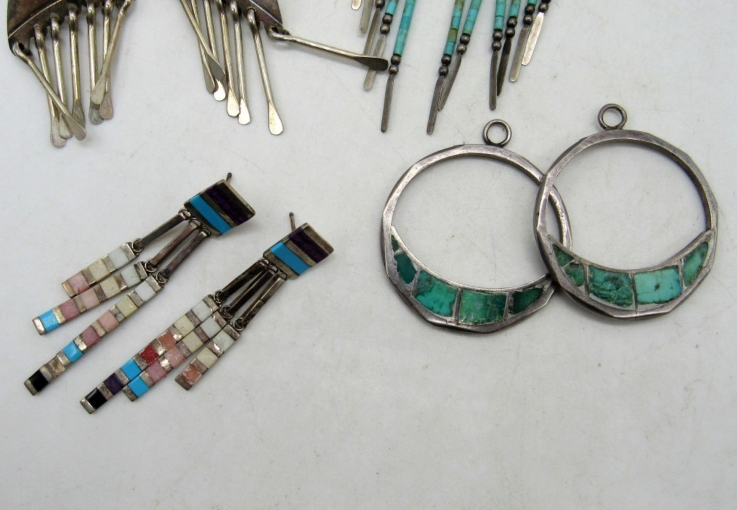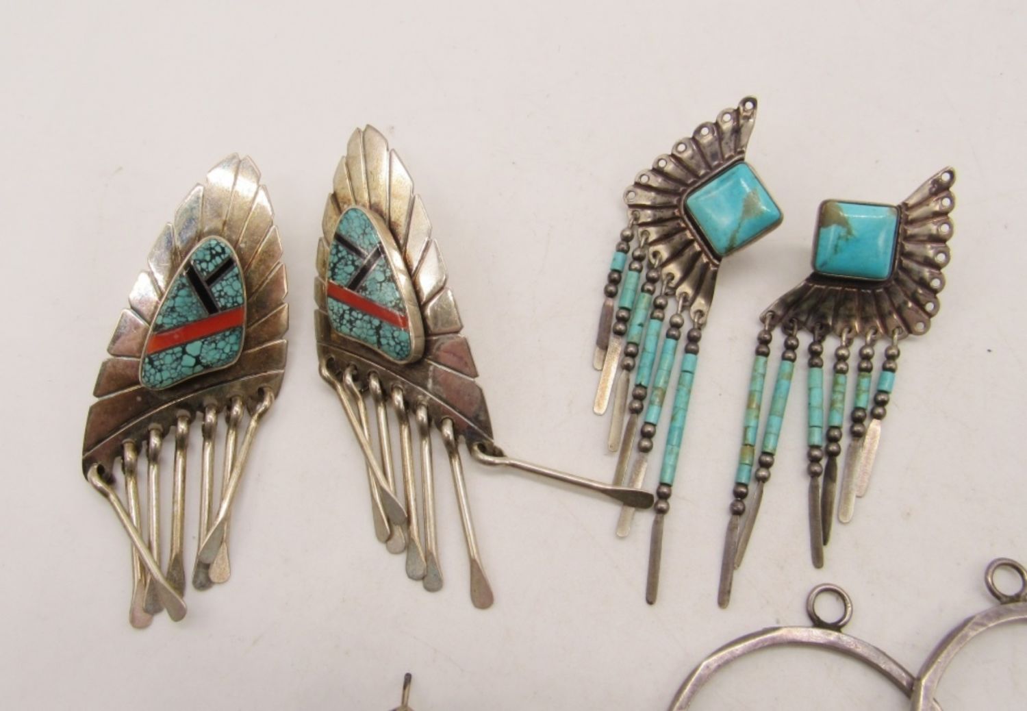 Vintage southwest earrings various lengths 2-3 inches. Round pair is missing the ear hooks, other are missing the backs. Great vintage set! (DWT 32.1)