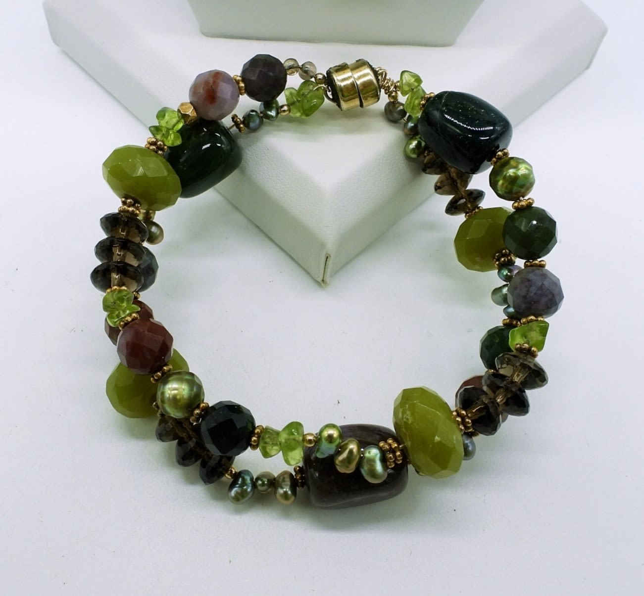 16 inch peridot, pearl, and garnet necklace. Mixed stone magnetic clasp bracelet. Beautiful set! (DWT 50)