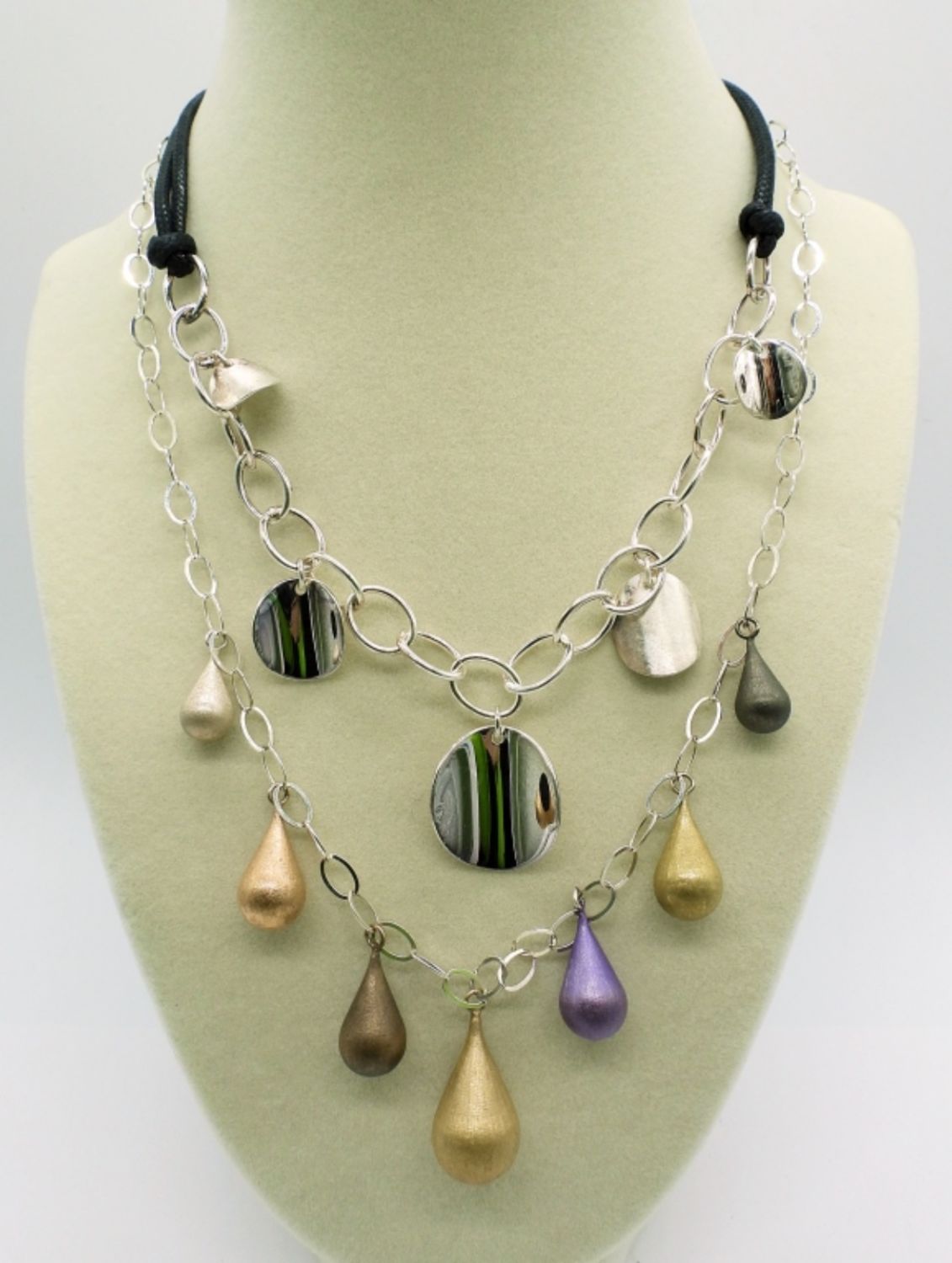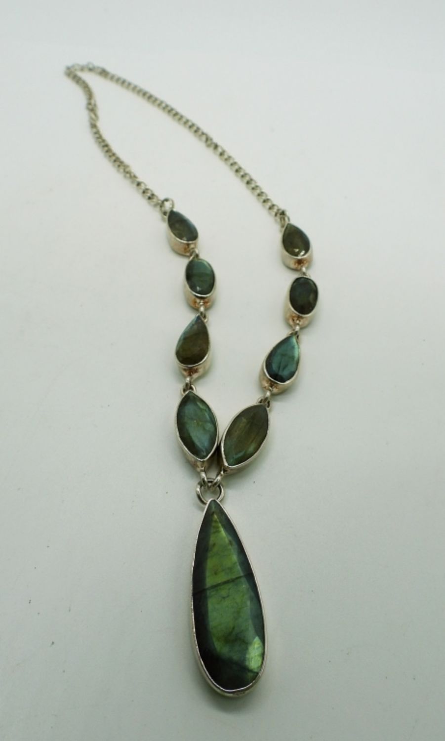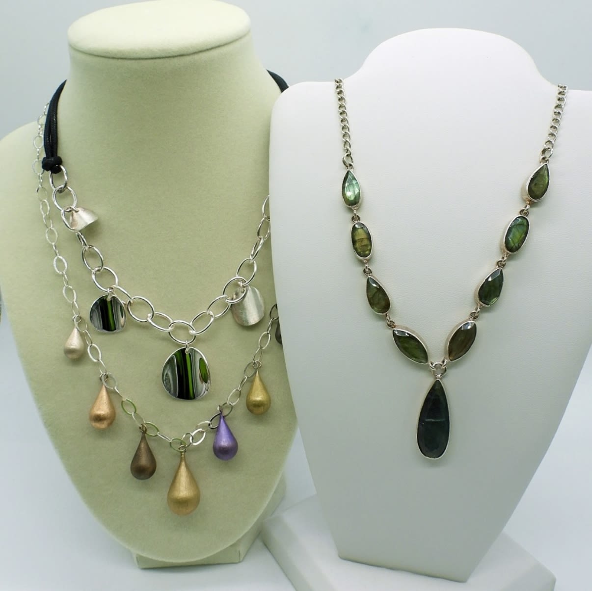 Various lengths 16-18. Flashy labradorite, black & bright silver tone, and multi-colored tear drop. Super cute! (DWT 37.2)