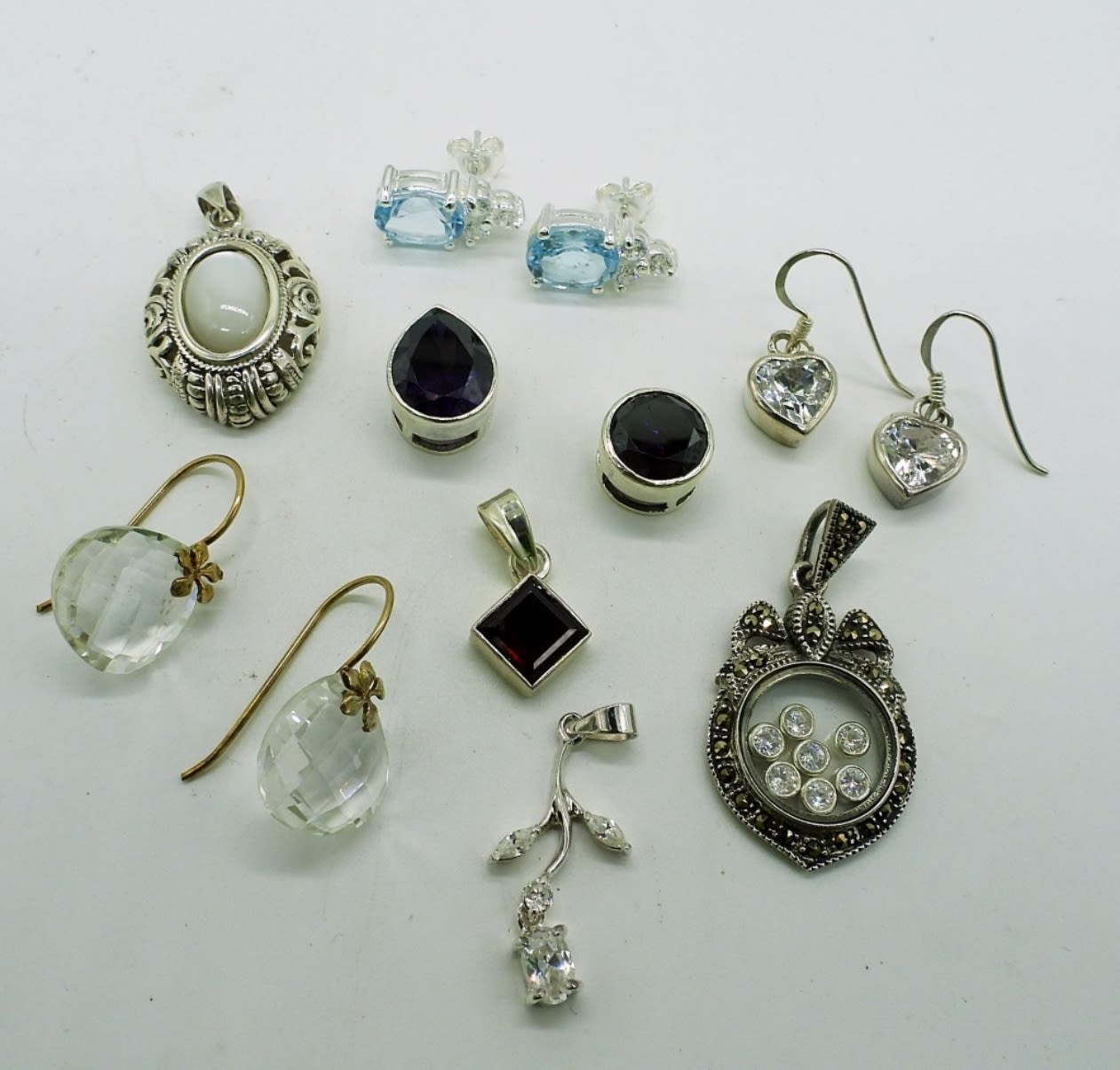 6 pendants with no chain, and 3 pairs of earrings. Very sparkly, and very pretty! (DWT 20.5)