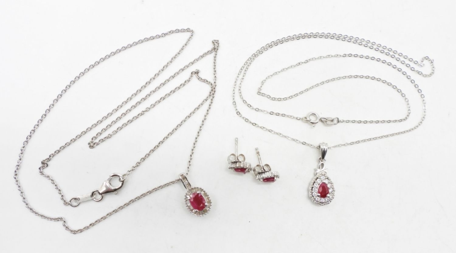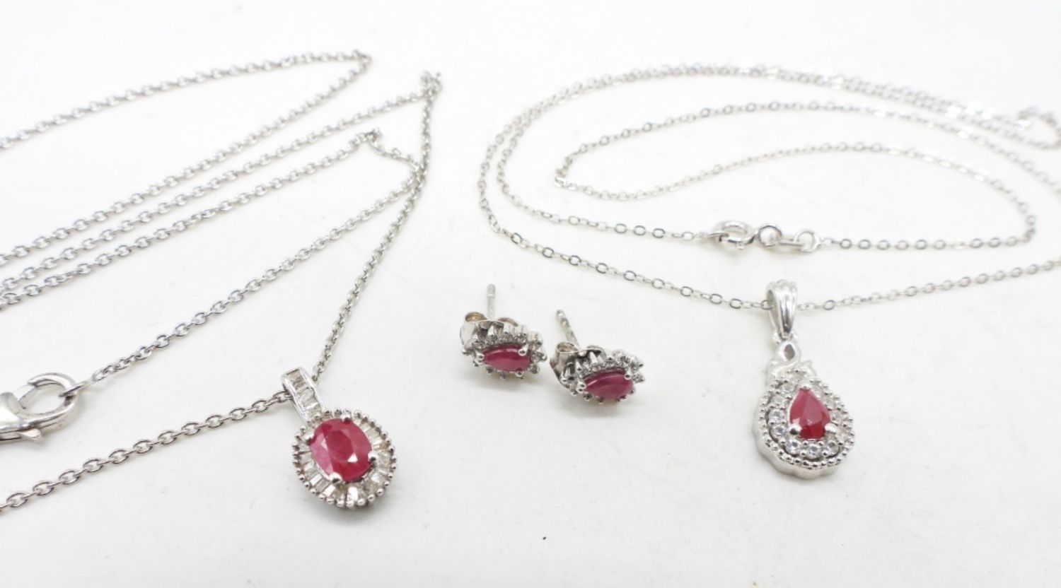 Two beautiful ruby necklaces 19 inches long with matching earrings. Stunning set! (DWT 5.2)