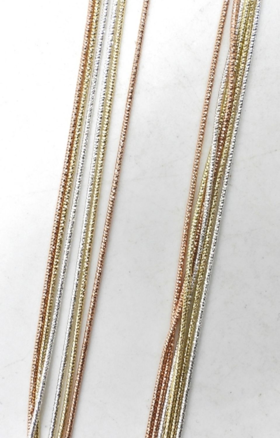 Gold tone, copper tone, and silver tone small snake chains All are 29 inches long. (DWT 7.3)