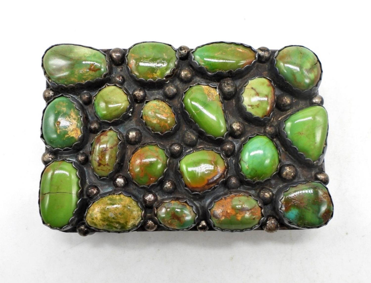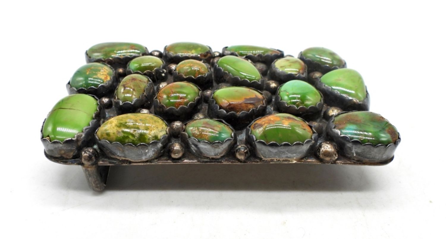 Southwest style belt buckle with natural green stones. Very unique piece! (DWT 45.2)