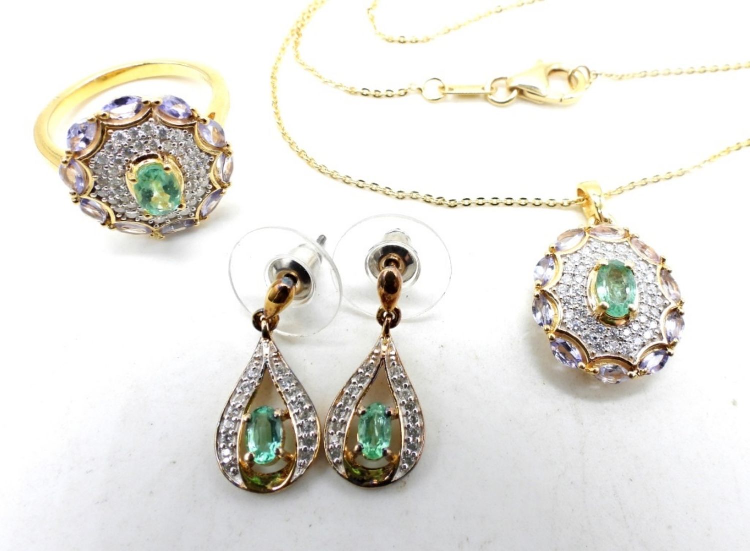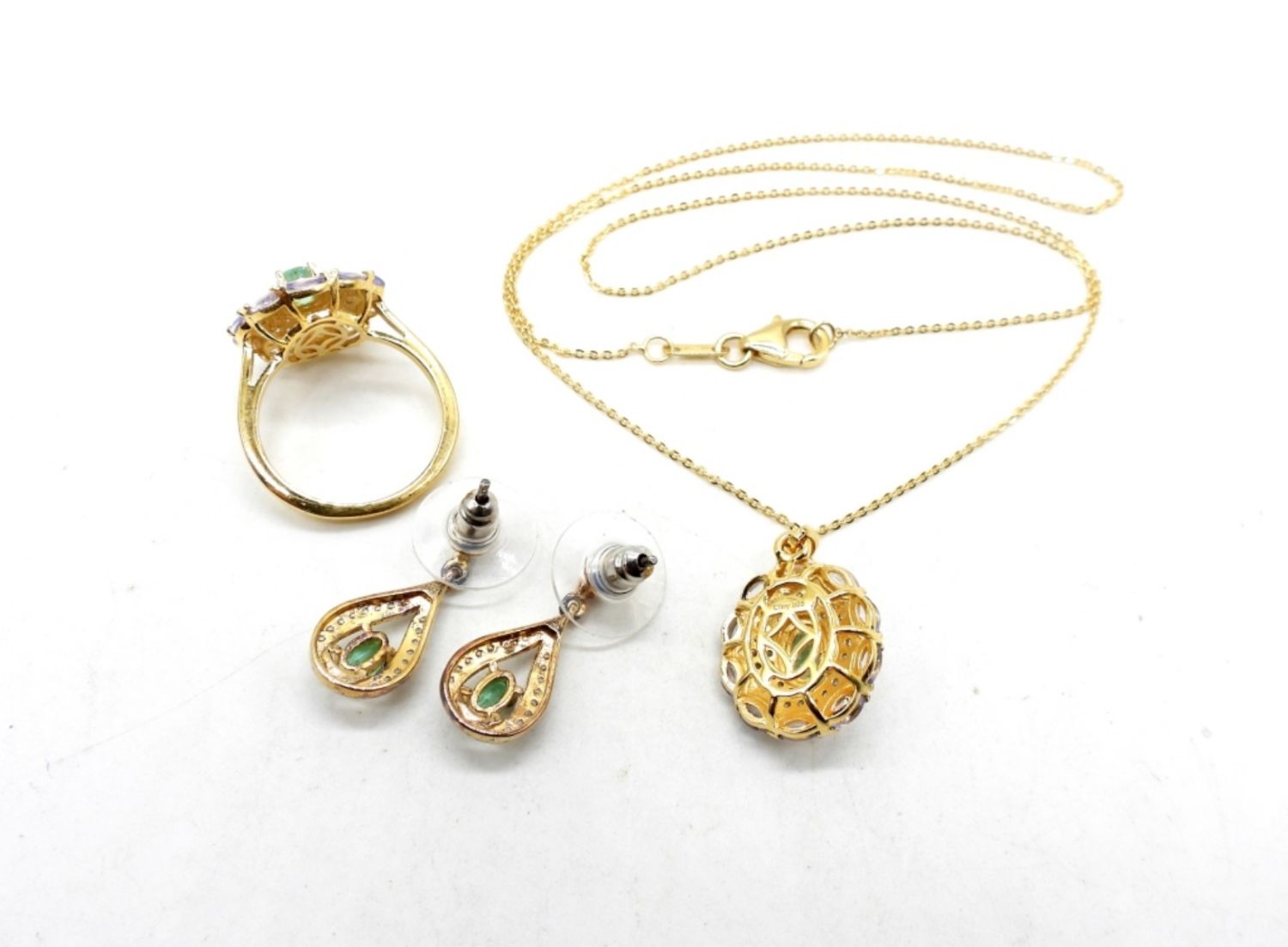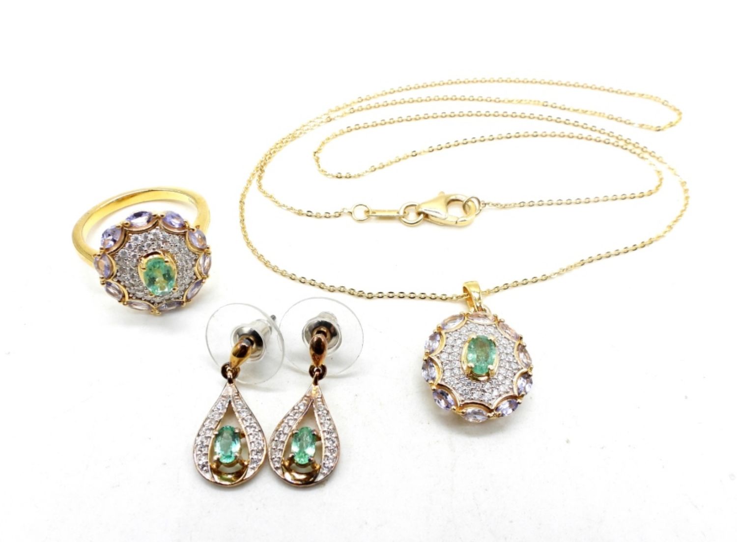Necklace is 19 inches, ring is size 7. Earrings are stud back. Gorgeous set! (DWT 6.9)