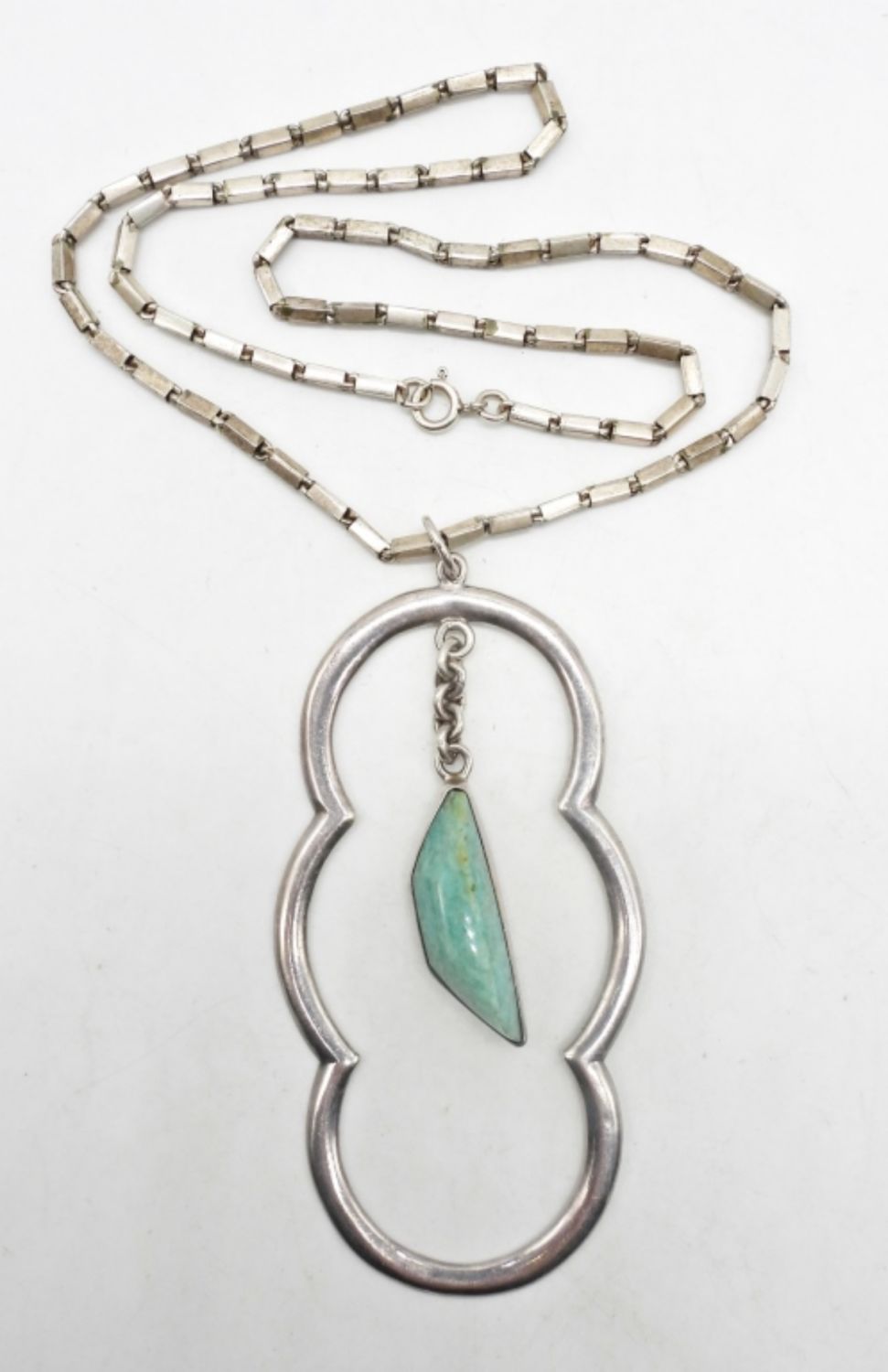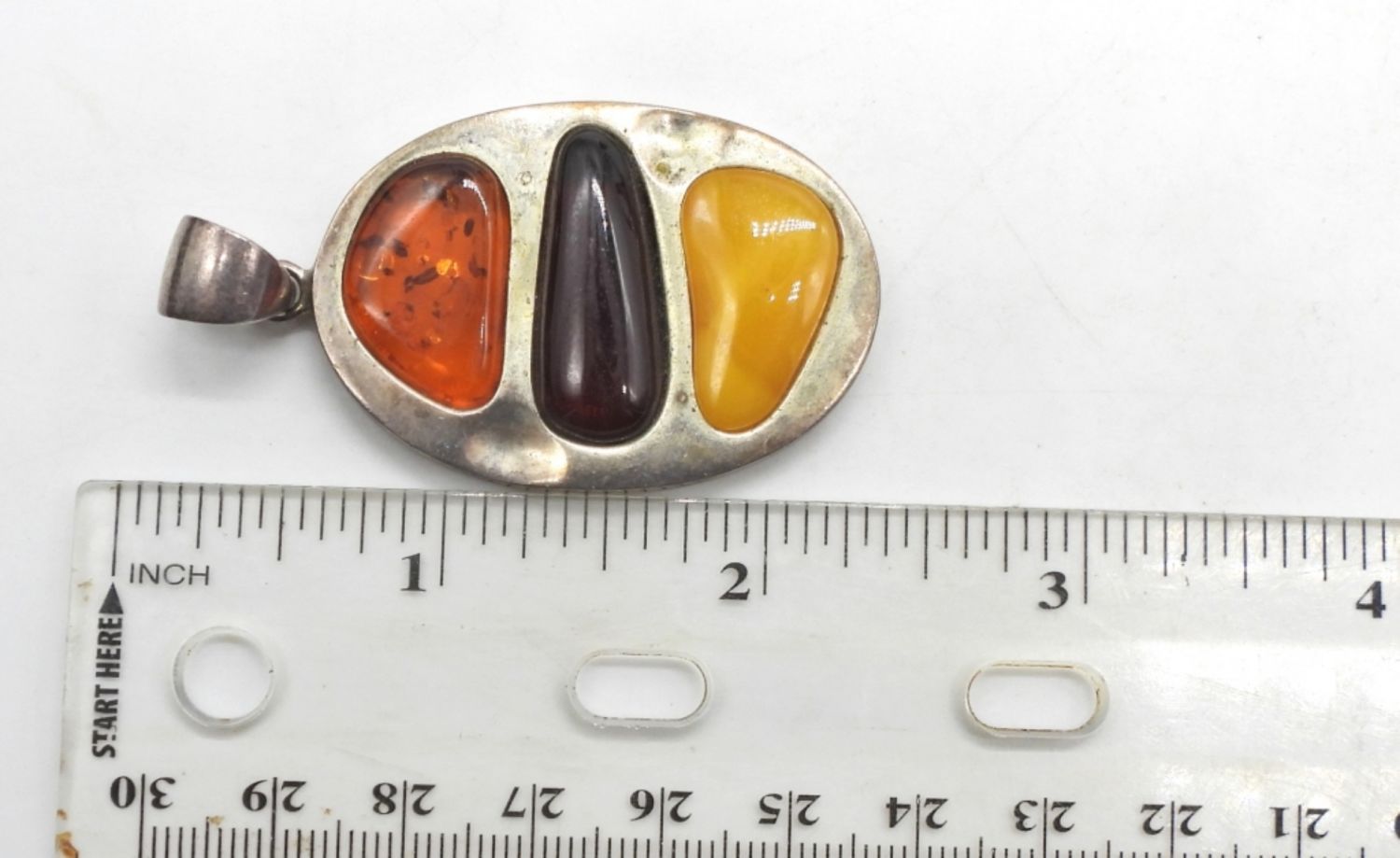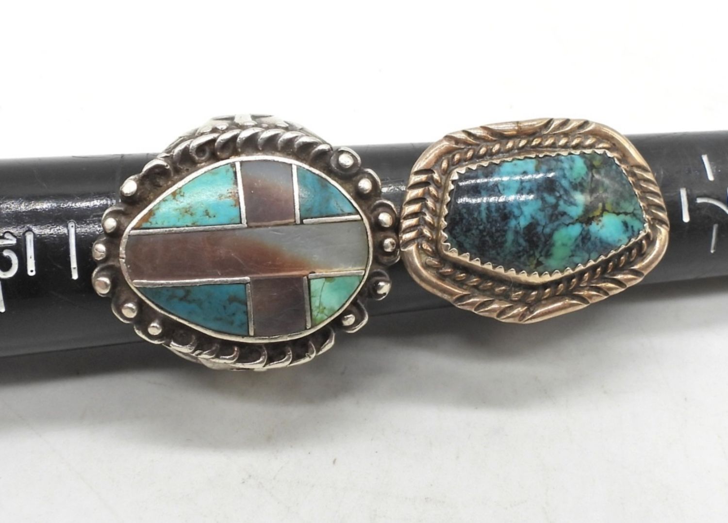 Amazonite pendant necklace chain length 19 inches, pendant measures 3.5 inches. Amber pendant measures 1.75 inches. Rings vary in size from 8-10. Nice vintage lot! (DWT 56.7)