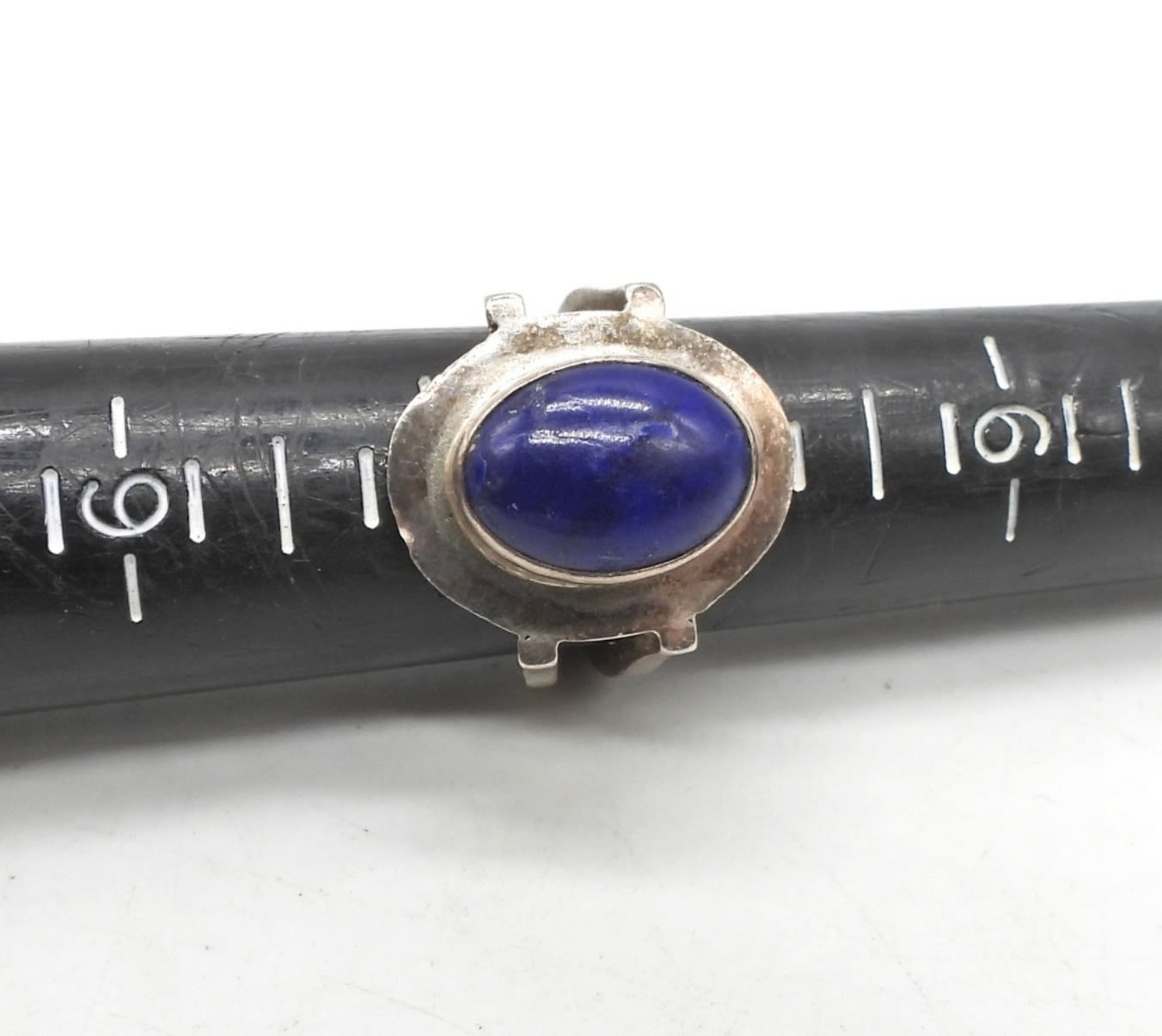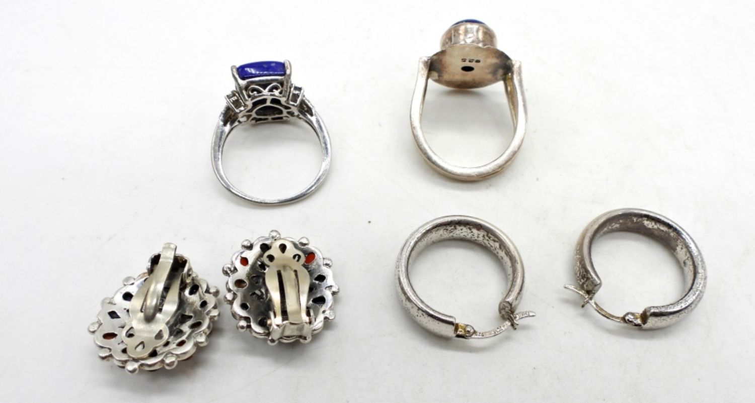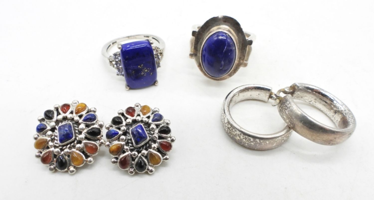 Earrings are clip-on style. Rings are sizes 7 & 8. Nice set for lapis lovers! (DWT 14.4)