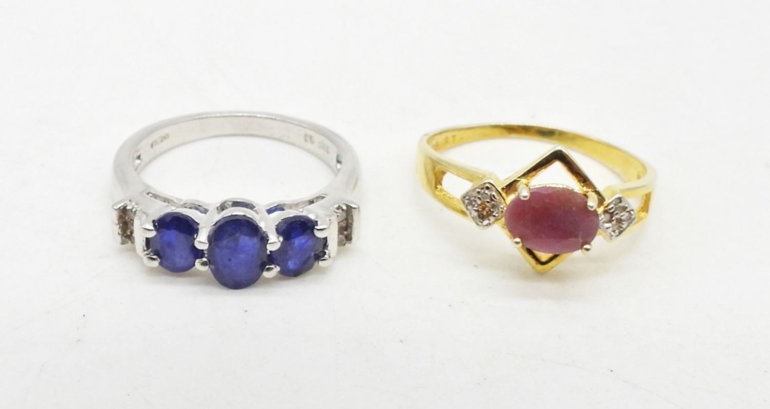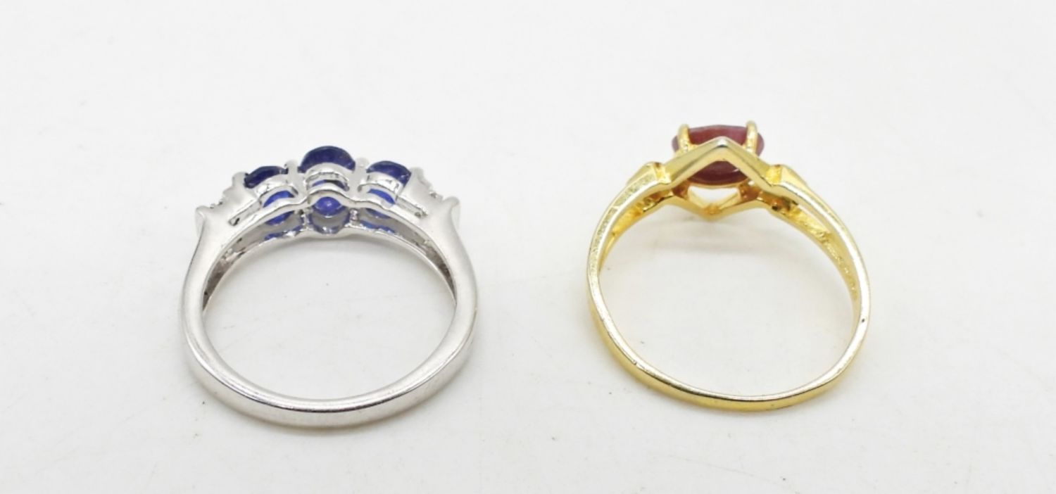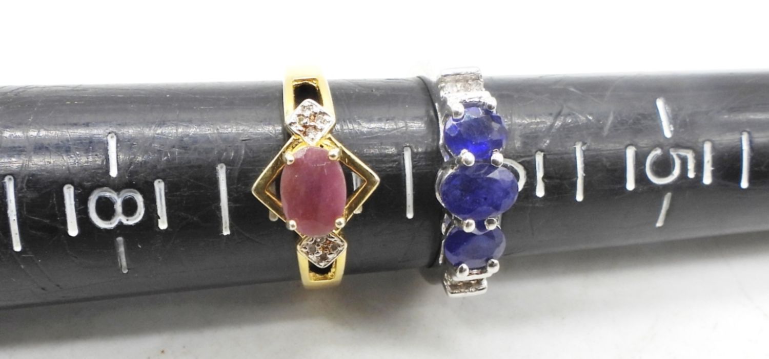 Sizes 6 & 6.75. Ruby is gold tone, sapphire is silver tone. Beautiful rings! (DWT 3)