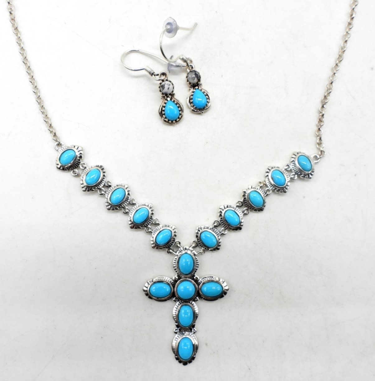 18 inch necklace with extender and matching earrings. Necklace is broken but still wearable. Very cute! (DWT 15.4)