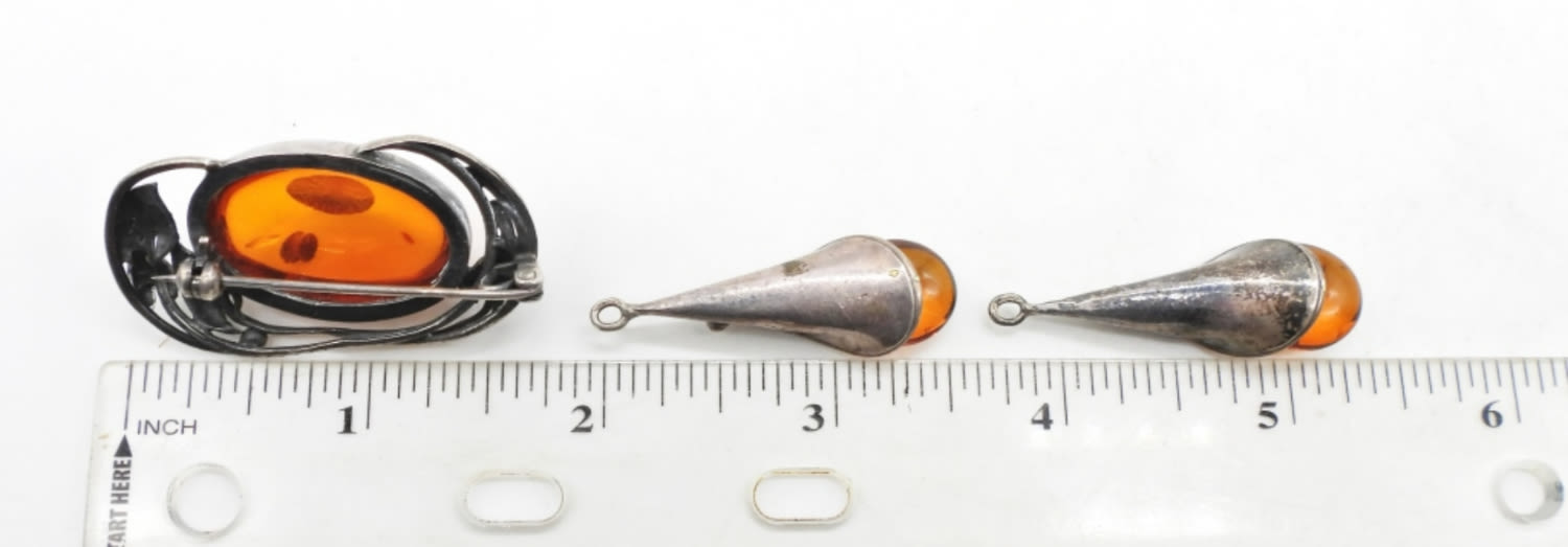 Pin measures 1.5 inches. Earrings are missing the fittings and measure 1.25 inches. (DWT 11.6)
