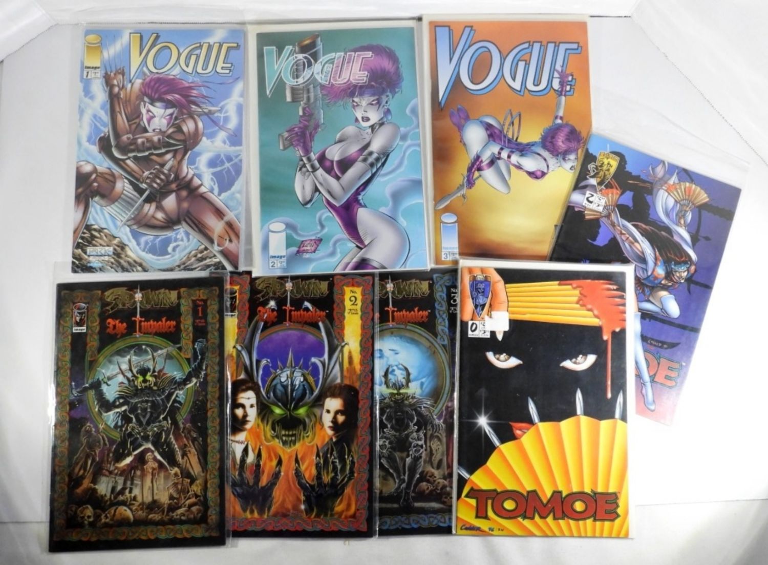 #2 & #3 VOGUE, SPAWN The TIMPALER #1 thru #3, TOMOE #O & #2 – ALL VERY NICE SLEEVED CONDITION