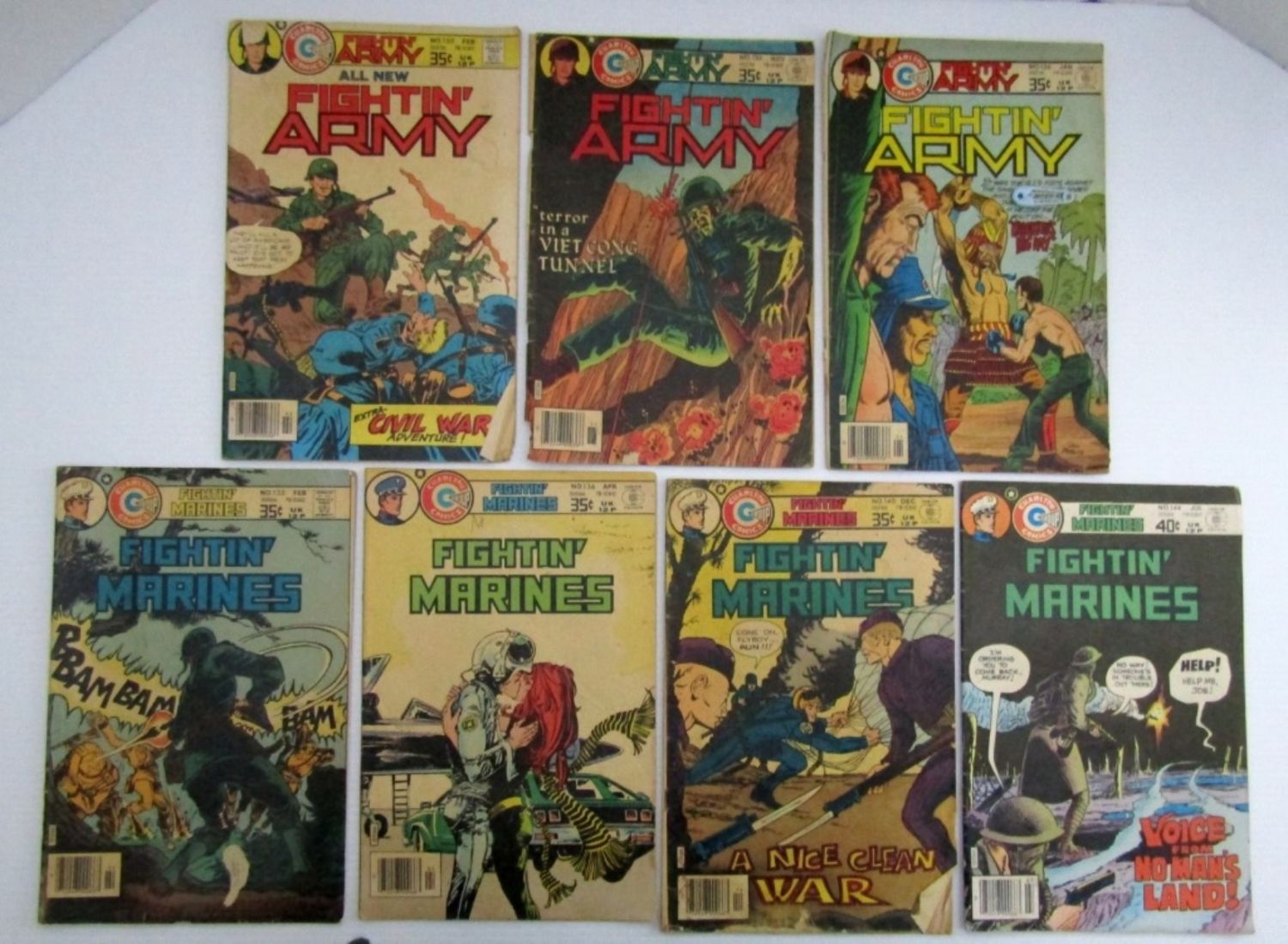 Fightin’ Marines #135, 136, 140, 144; Fightin’ Army #130, 135, 136; 1978 – 1979 Bronze Age Comics, Fair Conditons.