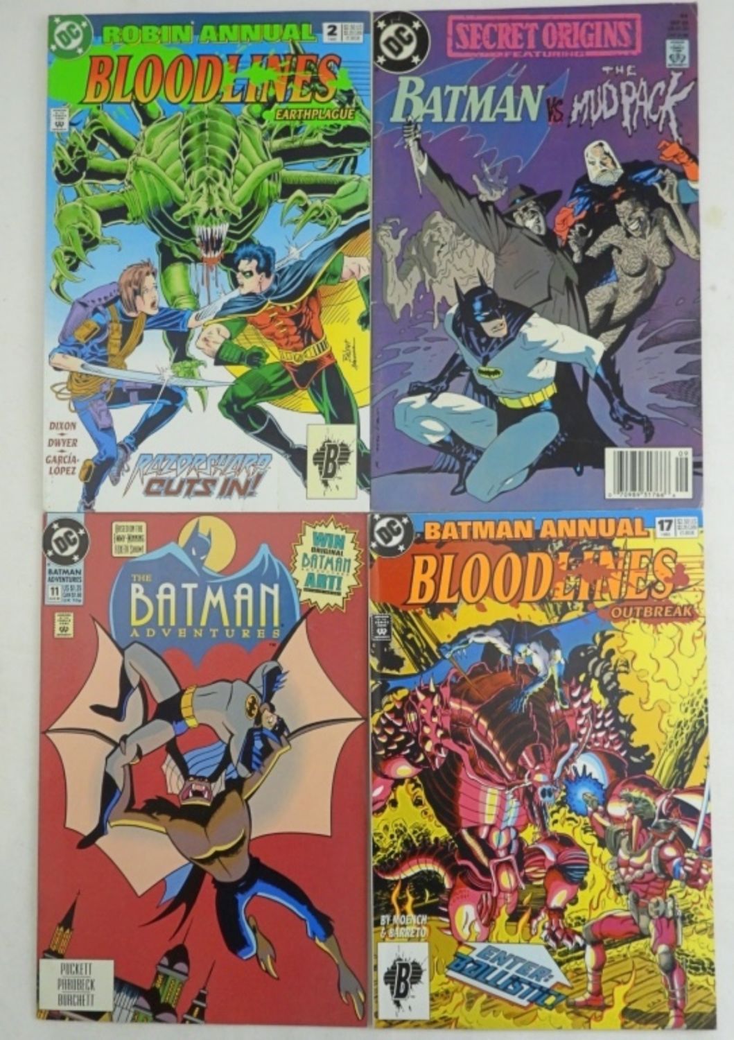 1989 DC Secret Origins Featuring Batman vs The Mud Pack #44, 1993 DC Batman Adventures #11, 1993 DC Batman Annual Bloodlines Outbreak #17, 1993 DC Robin Annual Bloodline Earth Plague #2; Good/VG Conditions.