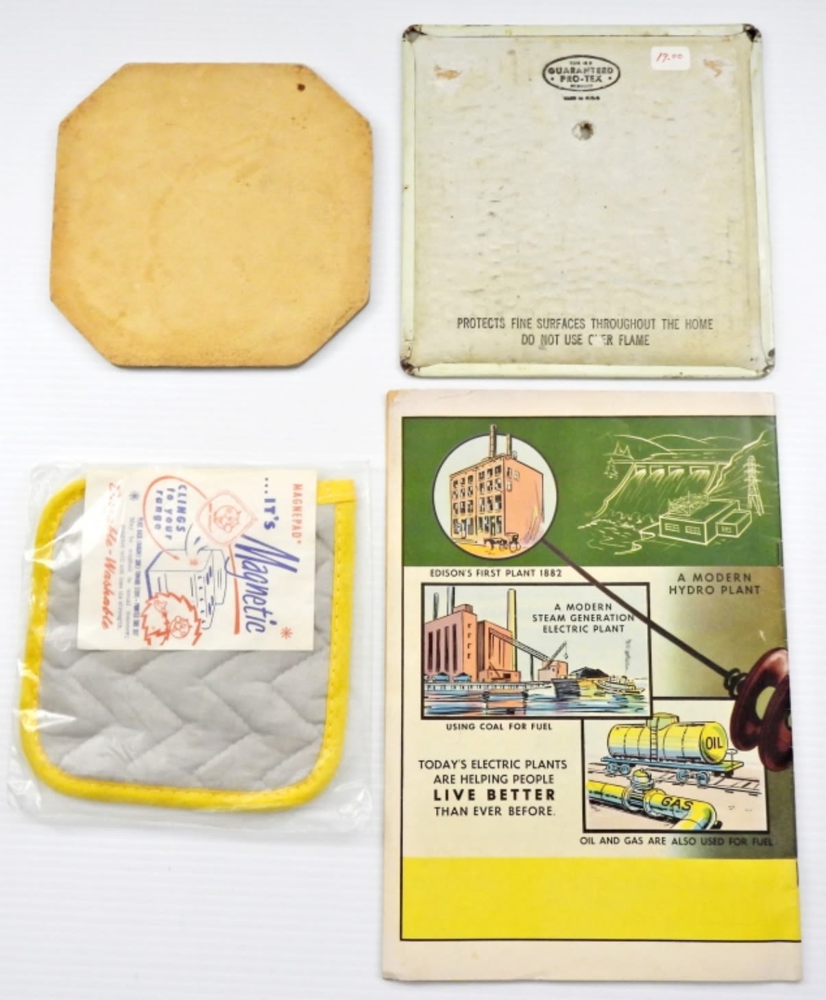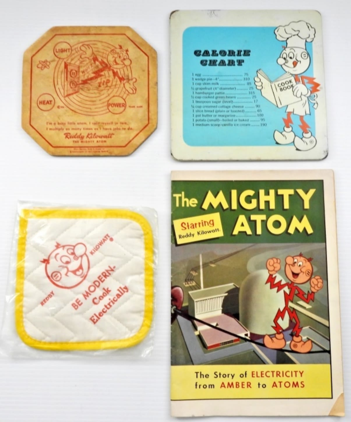 HOT PAD, HOT PLATE, METAL CALORIE CHART, THE MIGHTY ATOM BOOK – NICE CONDITION OVERALL