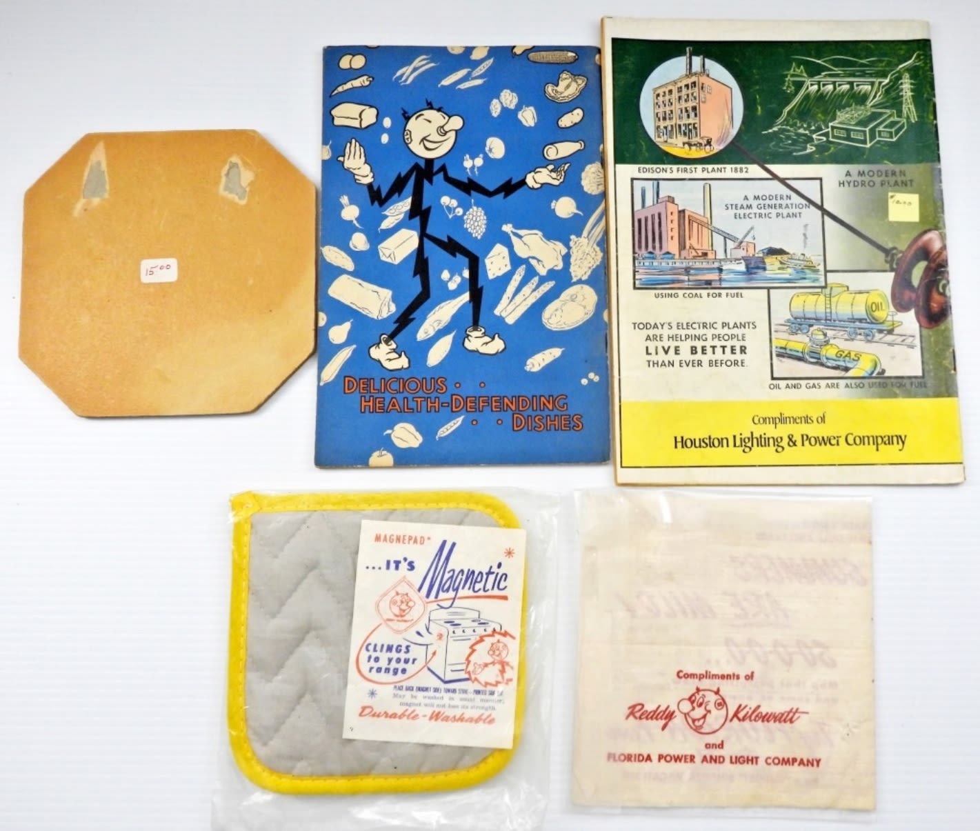 NAPKIN /PLACEMAT, POT HOLDER, HOT PLATE, COOKBOOK, THE MIGHTY ATOM BOOK