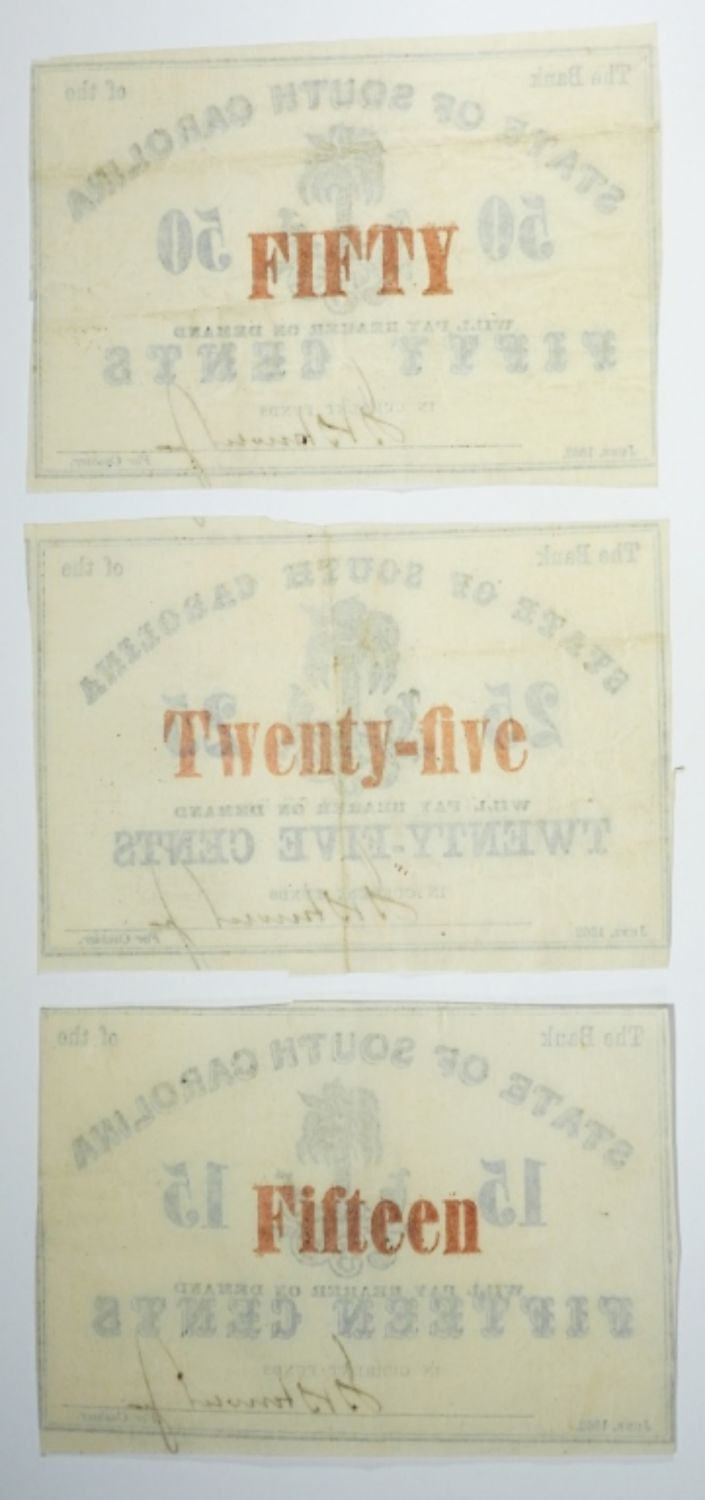 15, 25, & 50 CENTS BEARER NOTES. THE BANK OF THE STATE OF SOUTH CAROLINA