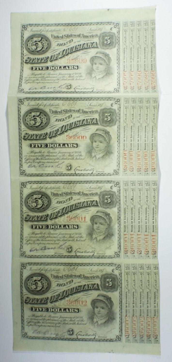 UNCUT SHEET OF FOUR. FIRST SIX 7 1/2 CENT COUPONS MISSING FROM ALL 4