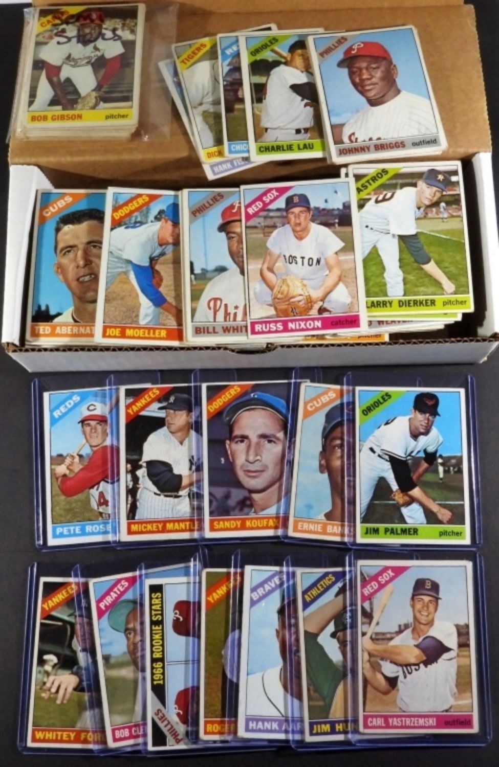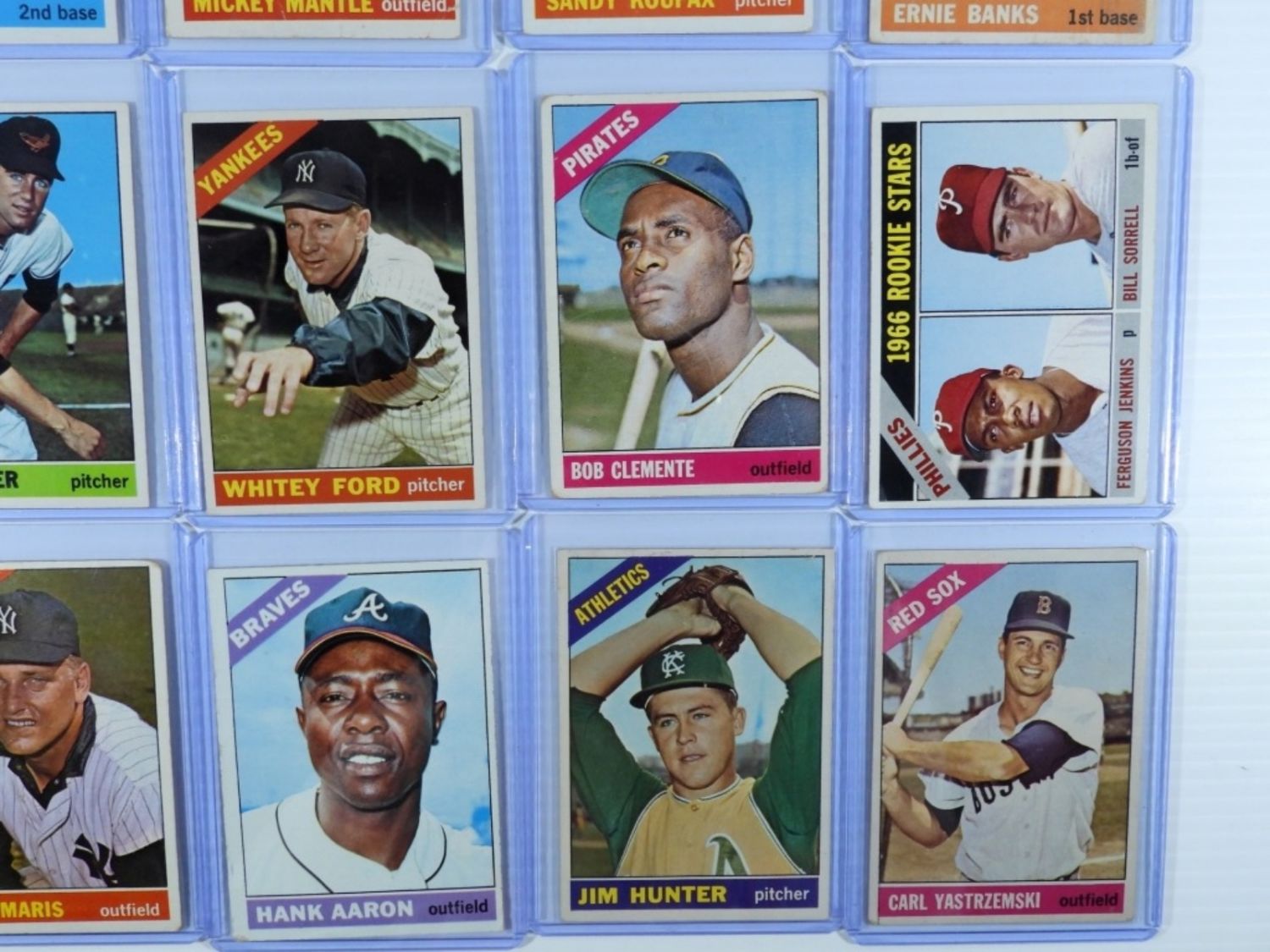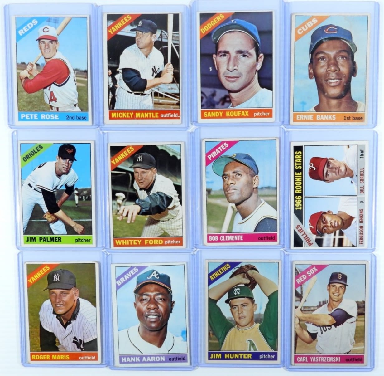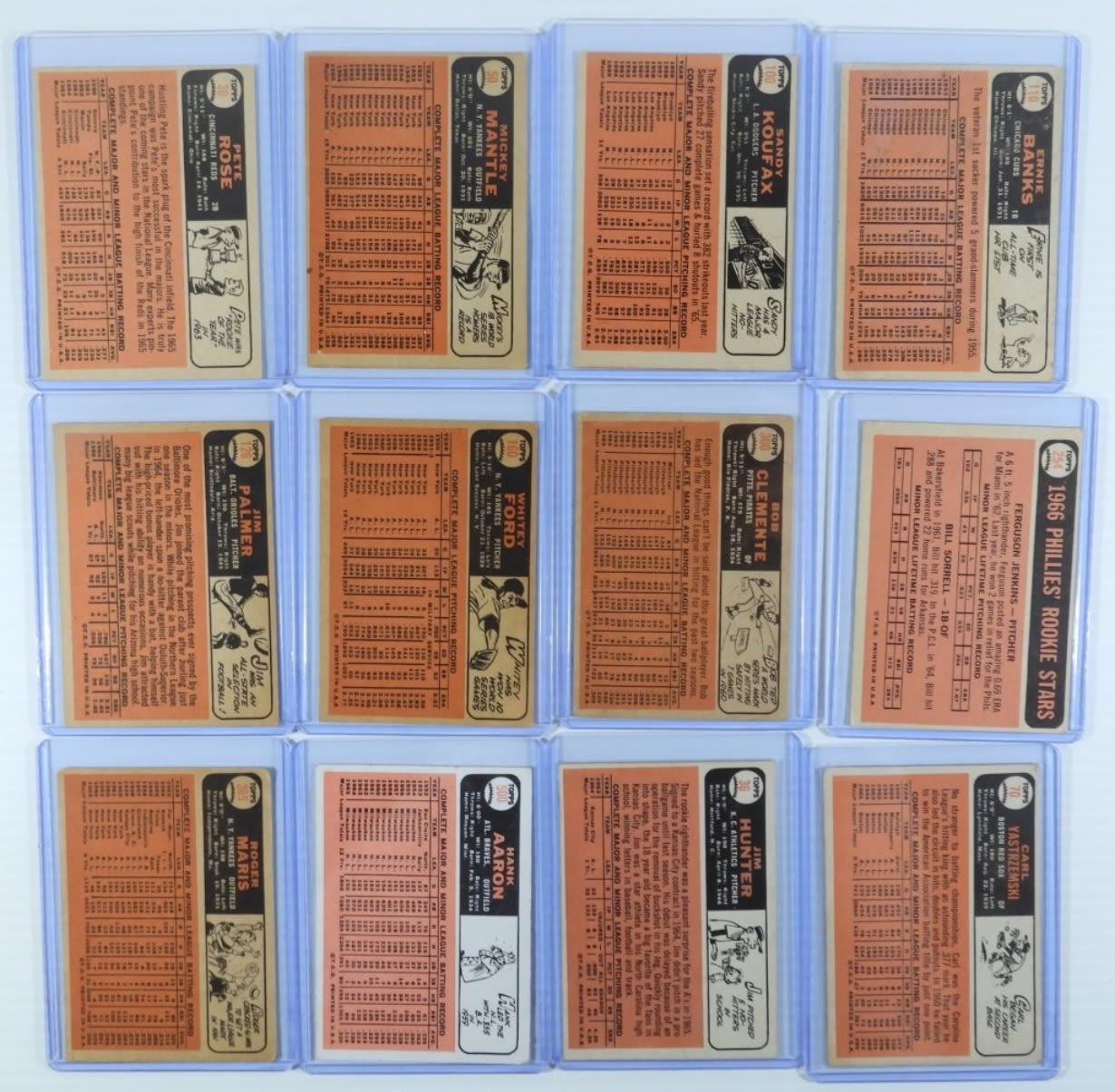 ALL DIFFERENT – includes #30 ROSE EX+, #36 HUNTER Rookie VG, #50 MANTLE GOOD, #70 YAZ VG, #72 PEREZ VG, #90 APARICIO VGEX, #92 YANKEES VG, #100 KOUFAX EX, #110 BANKS FAIR, #120 KILLEBREW VG, #125 BROCK VG, #126 PALMER EX++, #160 FORD EX, #172 METS EX, #195 MORGAN VG, (11) diff LEAGUE LEADERS VGEX/EX (1) FAIR, #254 JENKINS Rookie VGEX, #255 STARGELLEX, #500 CLEMENTE VG, #310 F. ROBINSON GOOD, #320 GIBSON VG, #365 MARIS EX++, #160 FORD EX, #172 METS EX, #195 MORGAN VG, (11) diff LEAGUE LEADERS VGEX/EX (1) FAIR, #254 JENKINS Rookie VGEX, #255 STARGELLEX, #500 CLEMENTE VG, #310 F. ROBINSON GOOD, #320 GIBSON VG, #365 MARIS
