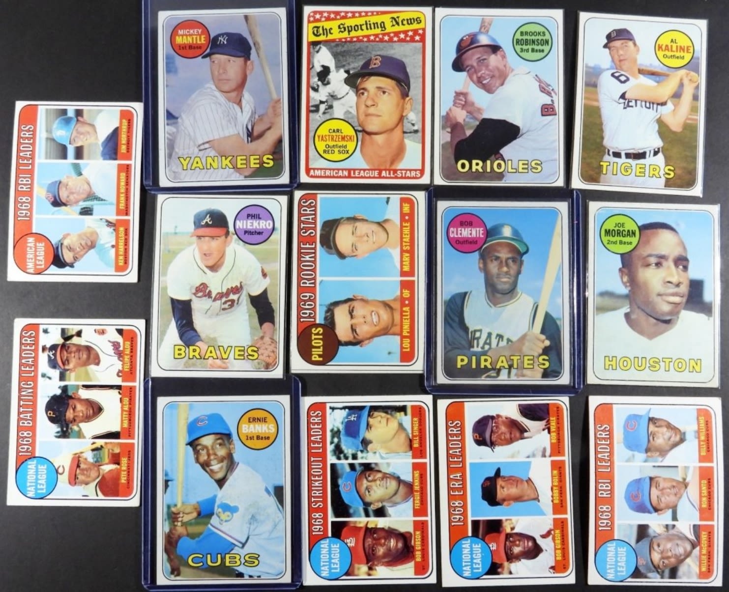 ALL DIFFERENT – includes (5) LEAGUE LEADERS VGEX/EX, #20 BANKS VGEX, #35 MORGAN VG, #50 CLEMENTE VGEX, #355 NIEKRO EX, #394 PINIELLA Rookie EX, #410 KALINE EX, #425 KALINE AS EX, #500 MANTLE VG, #550 B. ROBINSON EX – OVERALL VGEX/EX OVERALL VGEX/EX