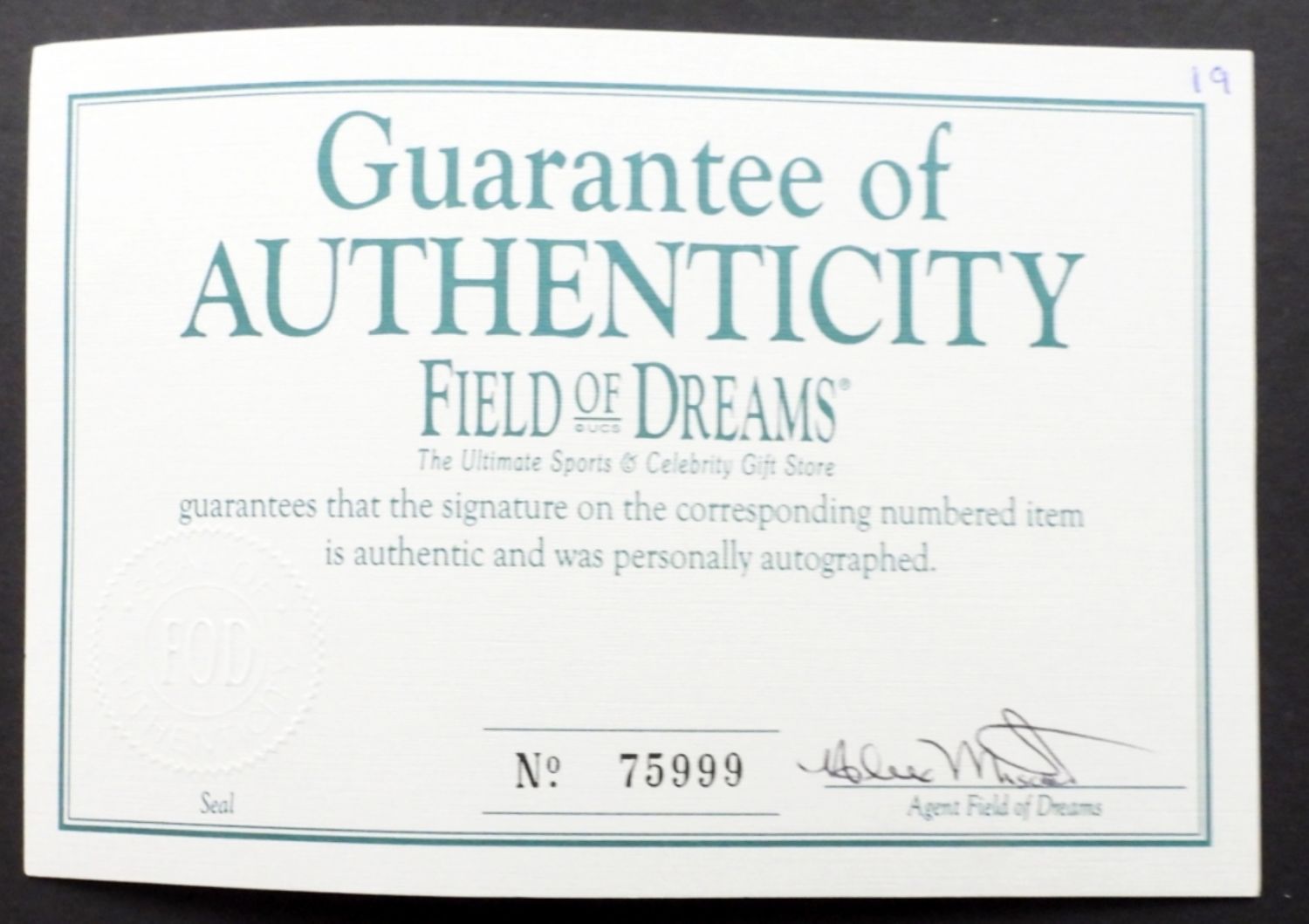 COA BY FIELD OF DREAMS, AMERICAN LEAGUE OFFICIAL BALL, IN PLASTIC CUBE BALL HOLDER