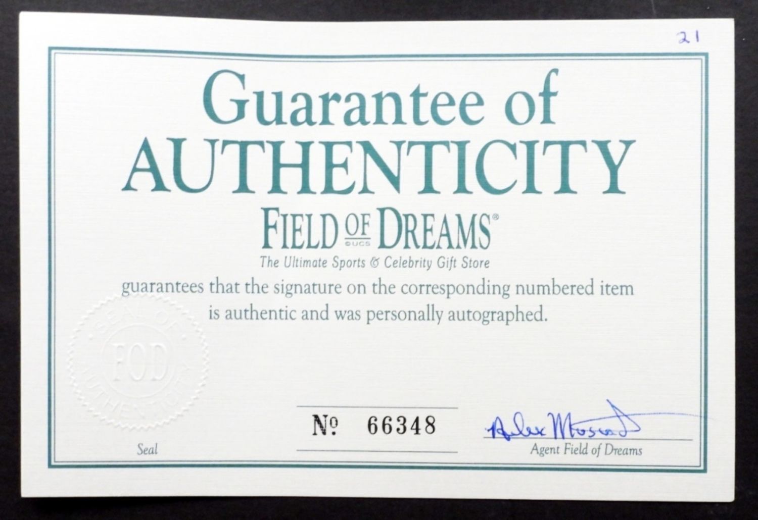 COA BY FIELD OF DREAMS, NATIONAL LEAGUE OFFICIAL BALL, IN PLASTIC CUBE BALL HOLDER