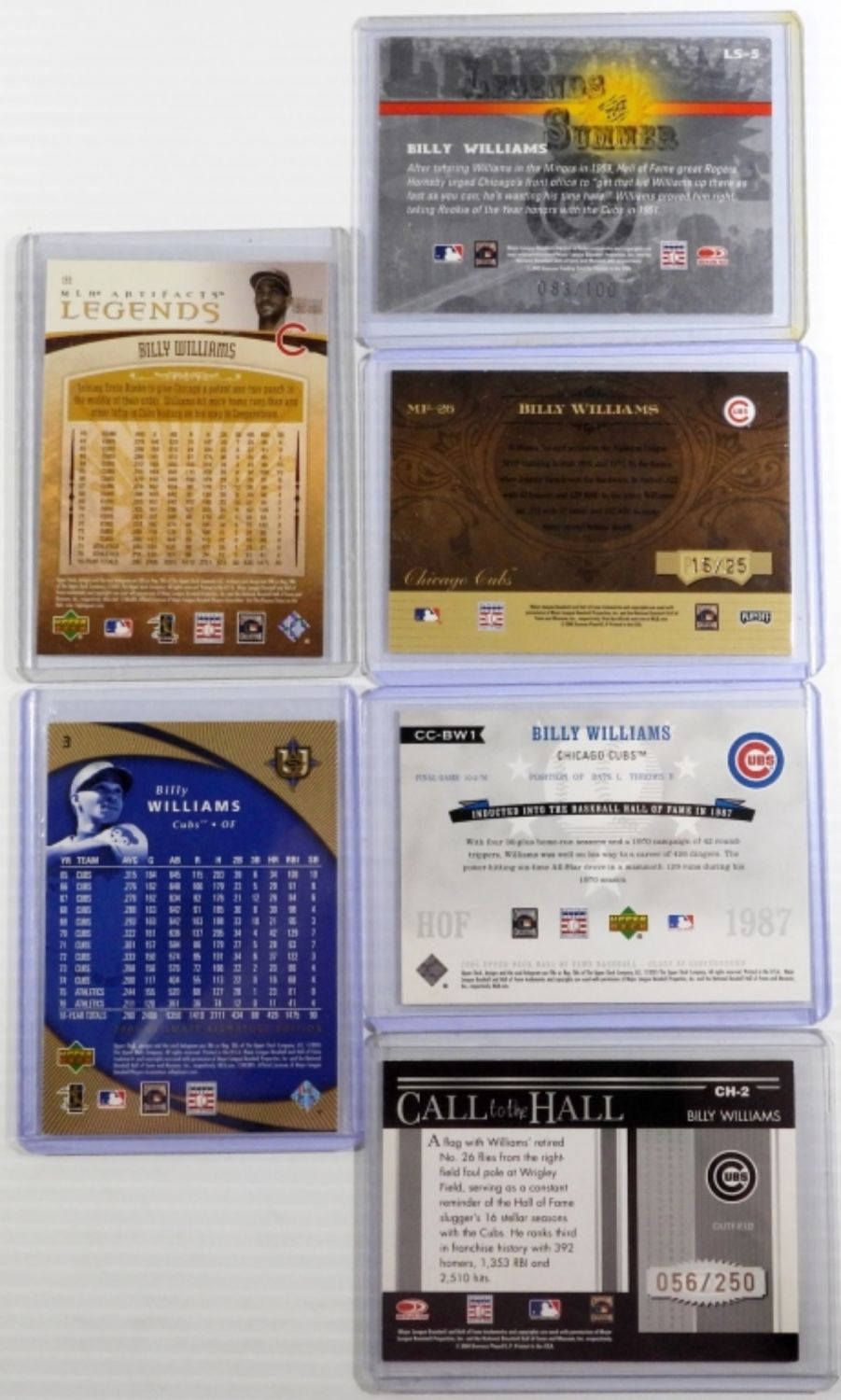 (1) #16/26 MARKS of FAME, #83/100 LEGENDS of SUMMER, #56/250 CALL TO THE HALL, #19/50 CLASS OF COOPERSTOWN, #505/825 ULTIMATE, 001/100 MLB ARTIFACTS – NICE LIMITED NUMBERED LOT