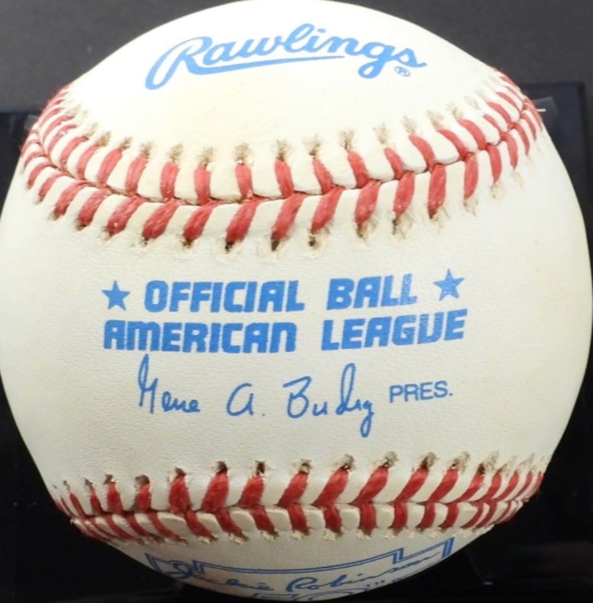 COA BY T & A SPORTS, AMERICAN LEAGUE OFFICIAL BALL, IN PLASTIC CUBE BALL HOLDER