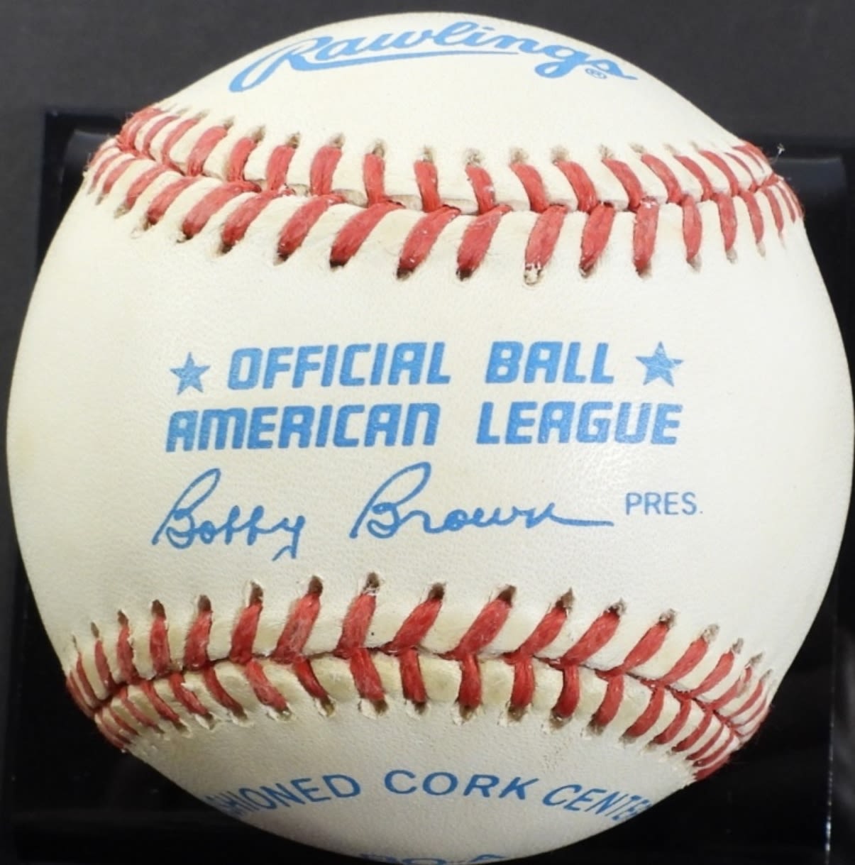 COA BY SOLID GOLD SPORTS CARD & MEMORABILIA, AMERICAN LEAGUE OFFICIAL BALL, IN PLASTIC CUBE BALL HOLDER