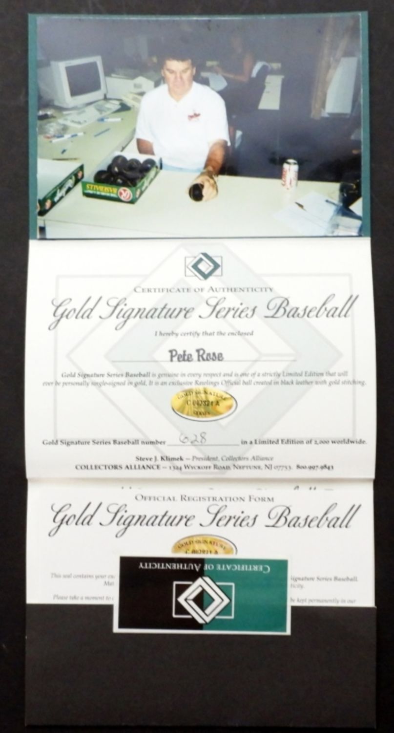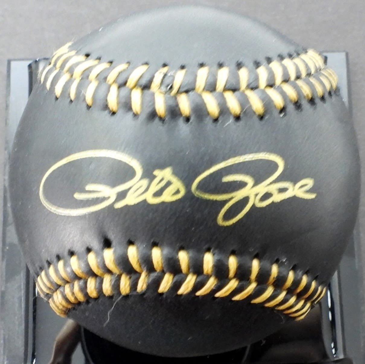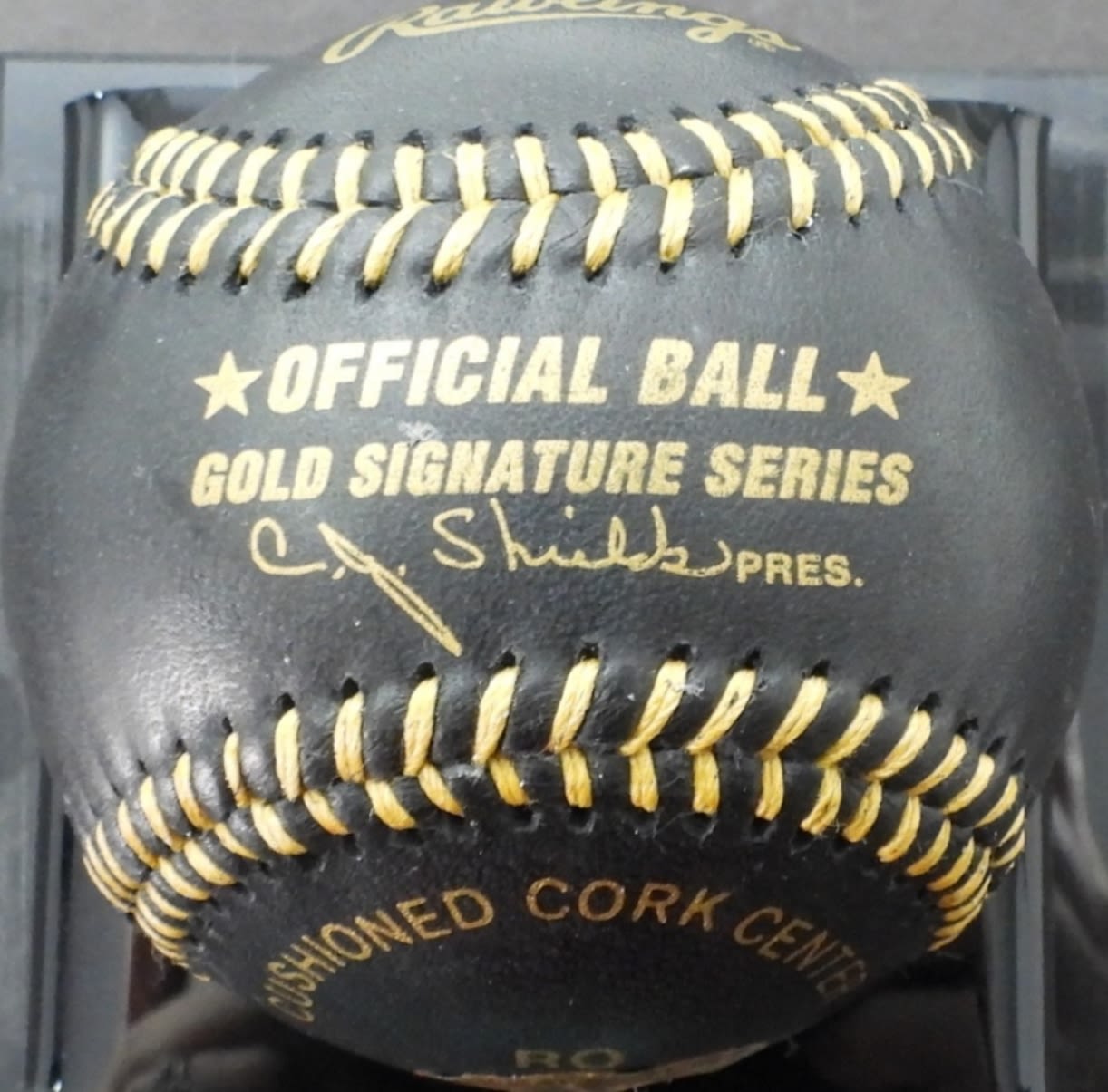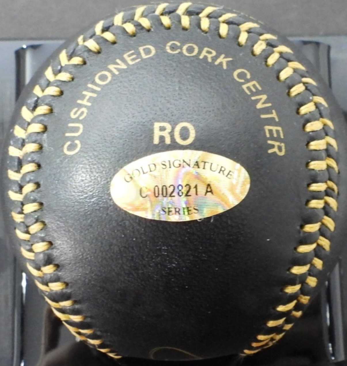 BLACK LEATHER BASEBALL, COA BY GOLD SIGNATURE SERIES BASEBALL, IN PLASTIC CUBE BALL HOLDER