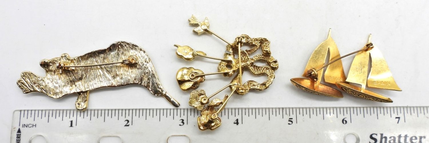 1- FLOWER PIN 2″ LONG,1- BOATS STAMPED SPAIN ON THE BACK 2 ” LONG, 1- CHEETAH LITTLE OVER 2 1/2″ LONG
