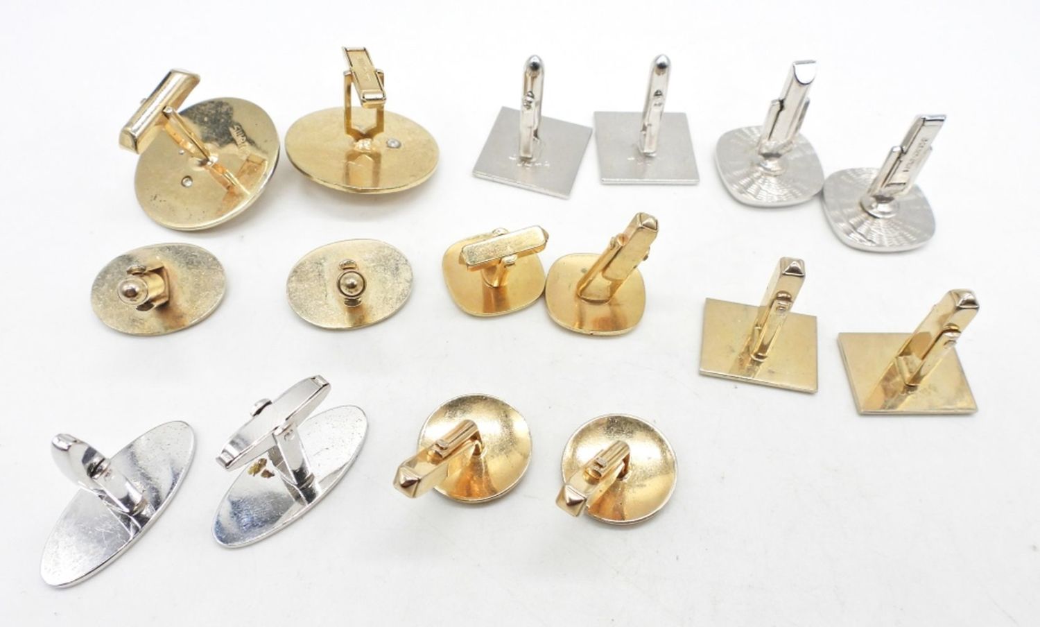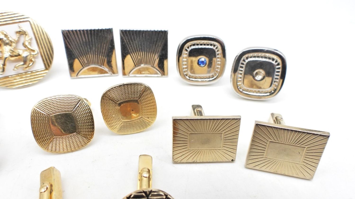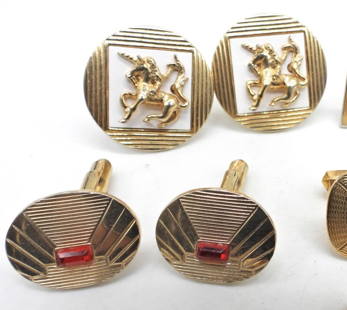 GOLD AND SILVER TONE, 3 PAIRS ARE SWANK, 1 PAIR FOSTER, (1 SILVER TONE PAIR IS MISSING THE BLUE STONE IN THE MIDDLE)