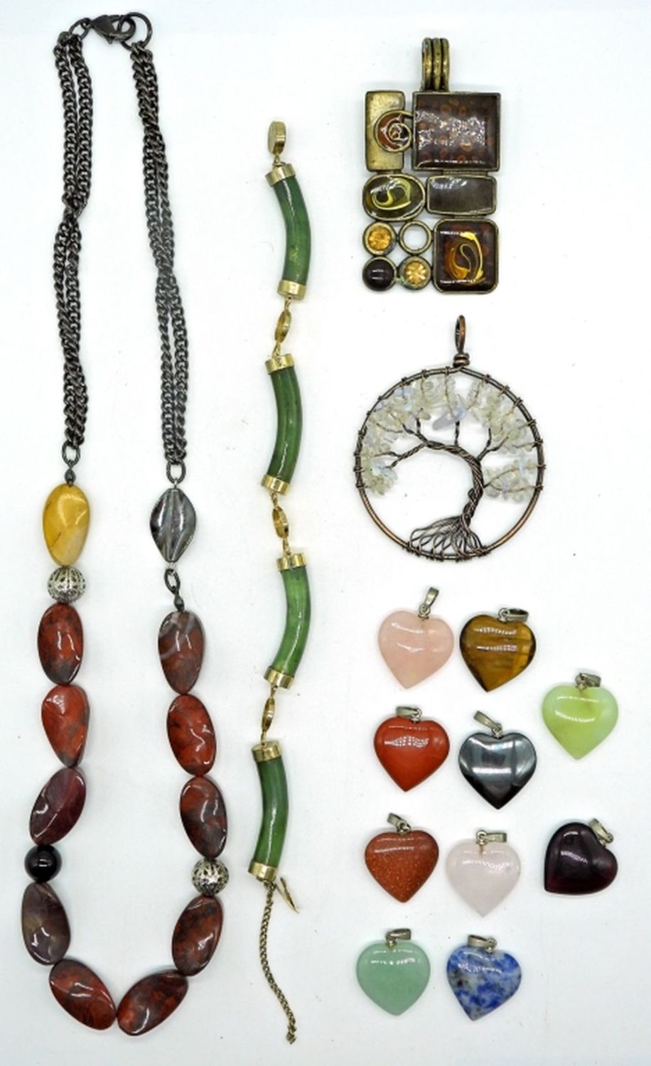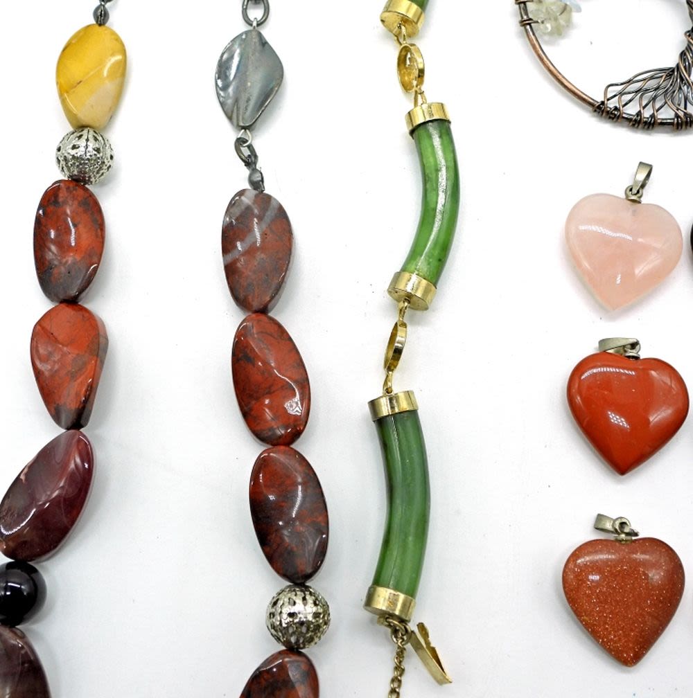 Jasper necklace 20 niches, 8 inch jade green bracelet, rainbow moonstone Tree of Life pendant, mixed heart pendants.