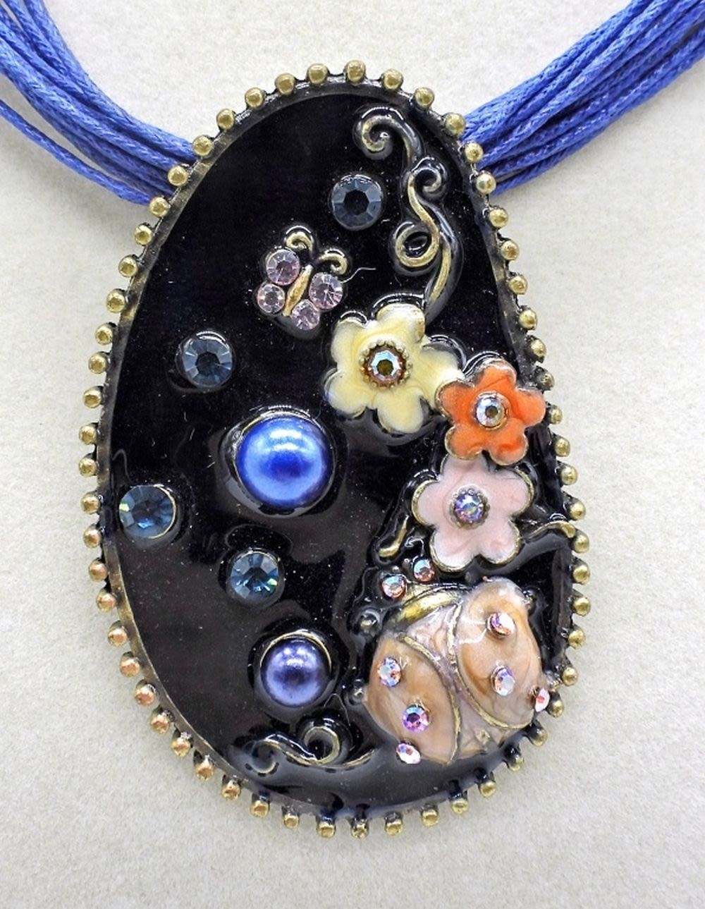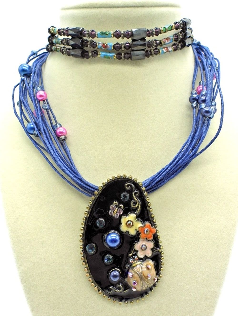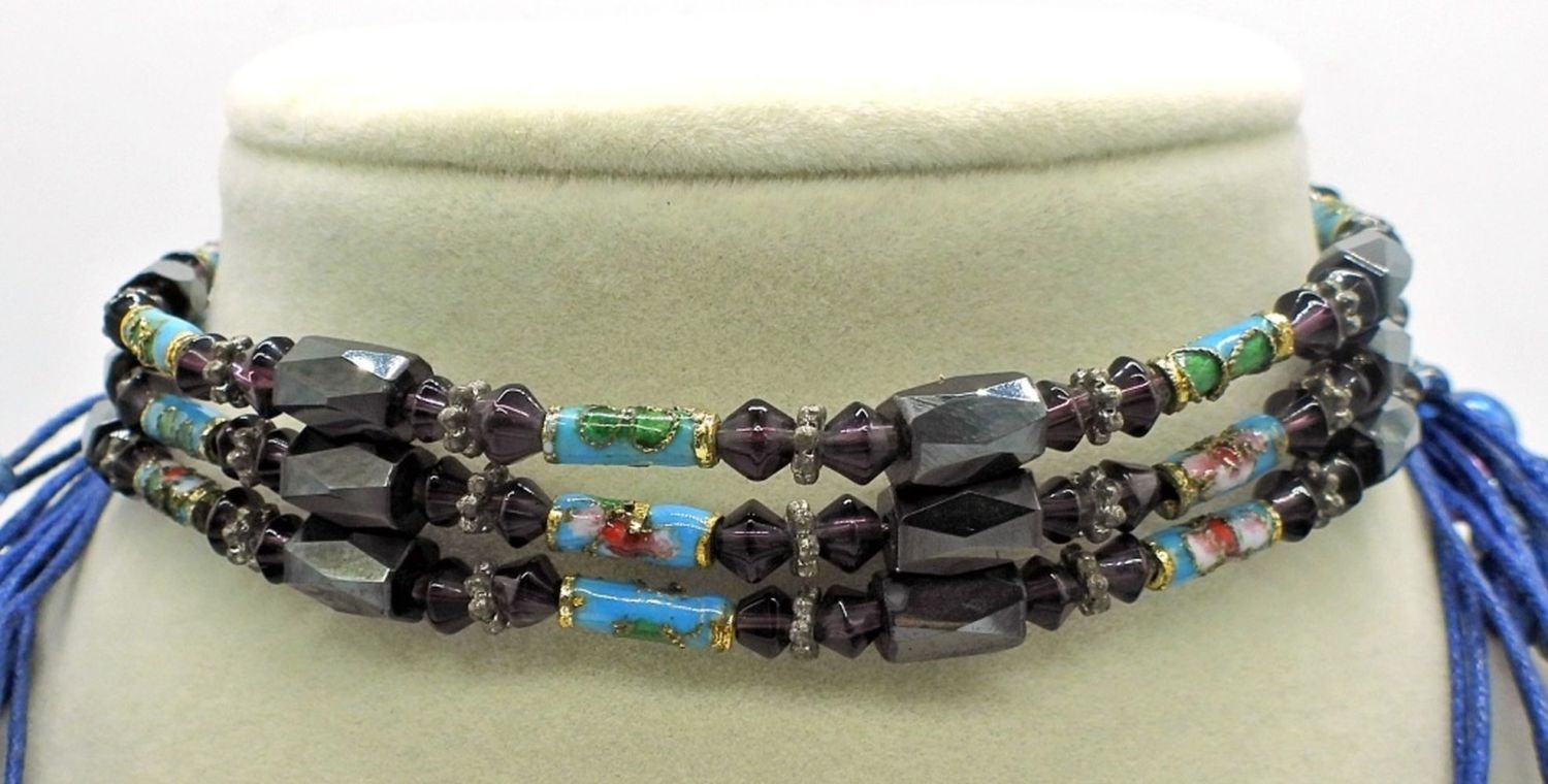 Blue themed statement necklace 14 inches with extender, plus blue and purple magnetic hematite lariat necklace 36 inches long.