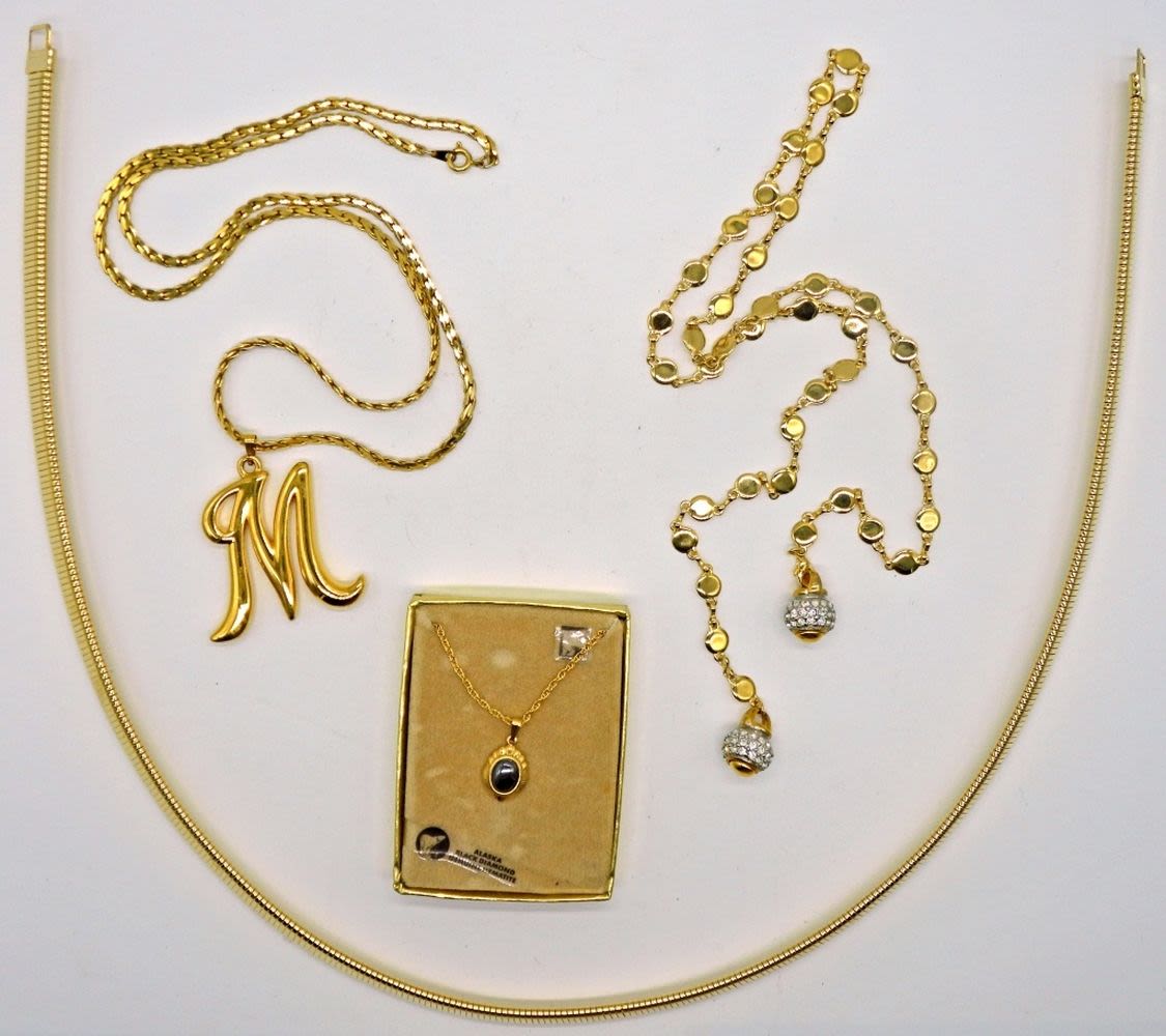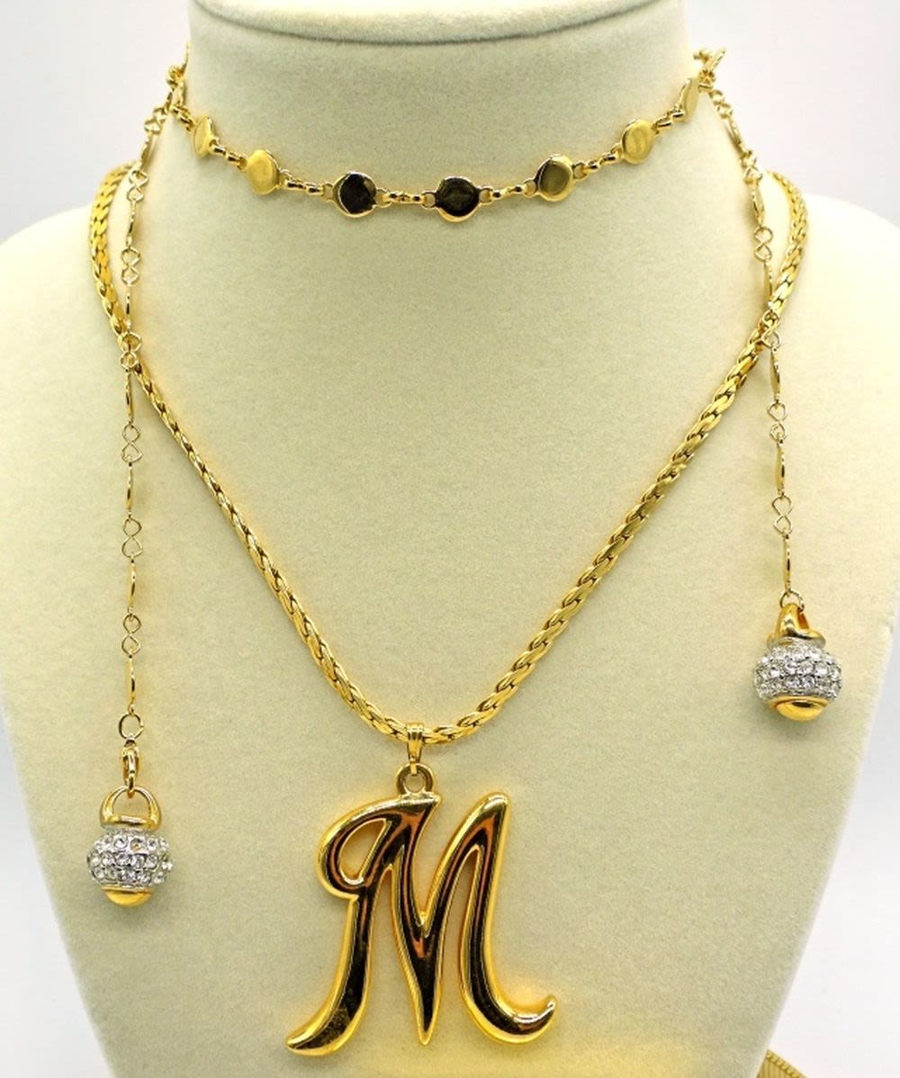 Four necklaces in various lengths. ‘M’ monogram, hematite pendant, and more.
