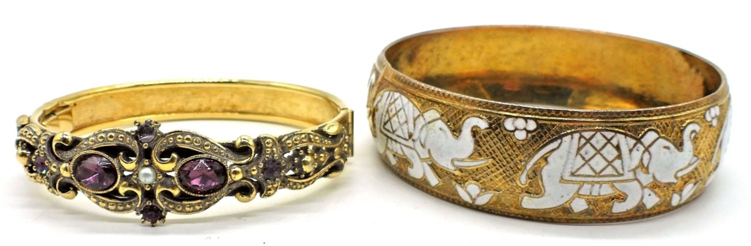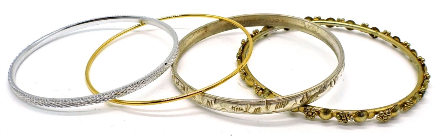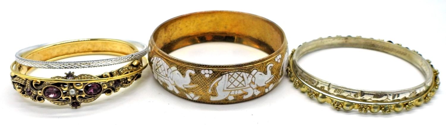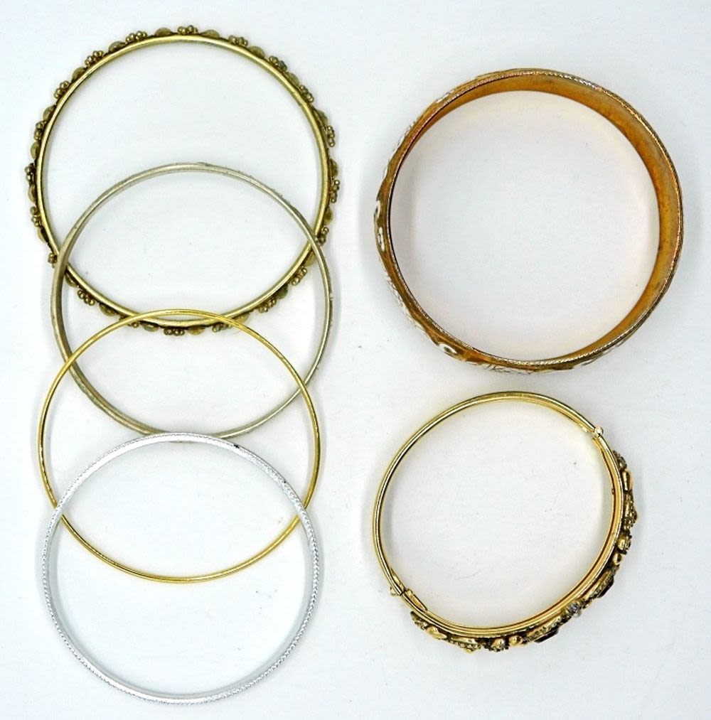 Six bracelets in gold tone and silver tone, in various sizes.