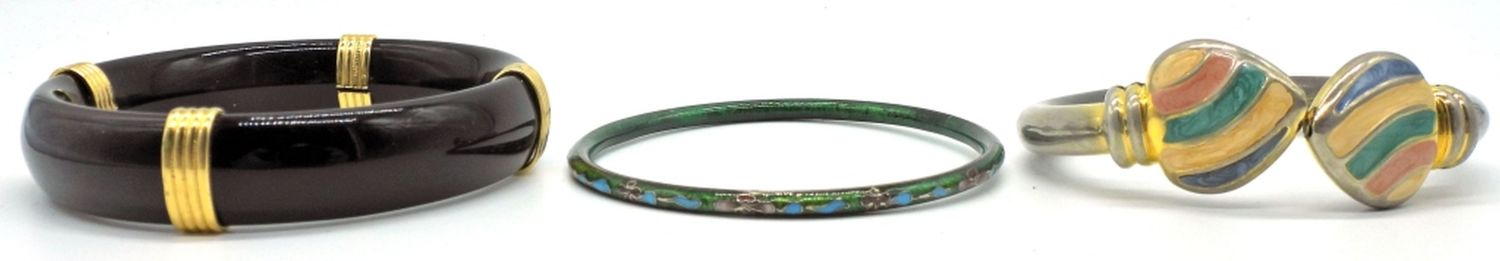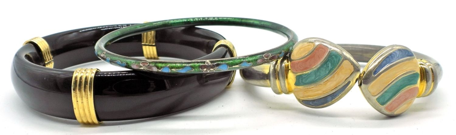 3 bracelets in various colors and sizes