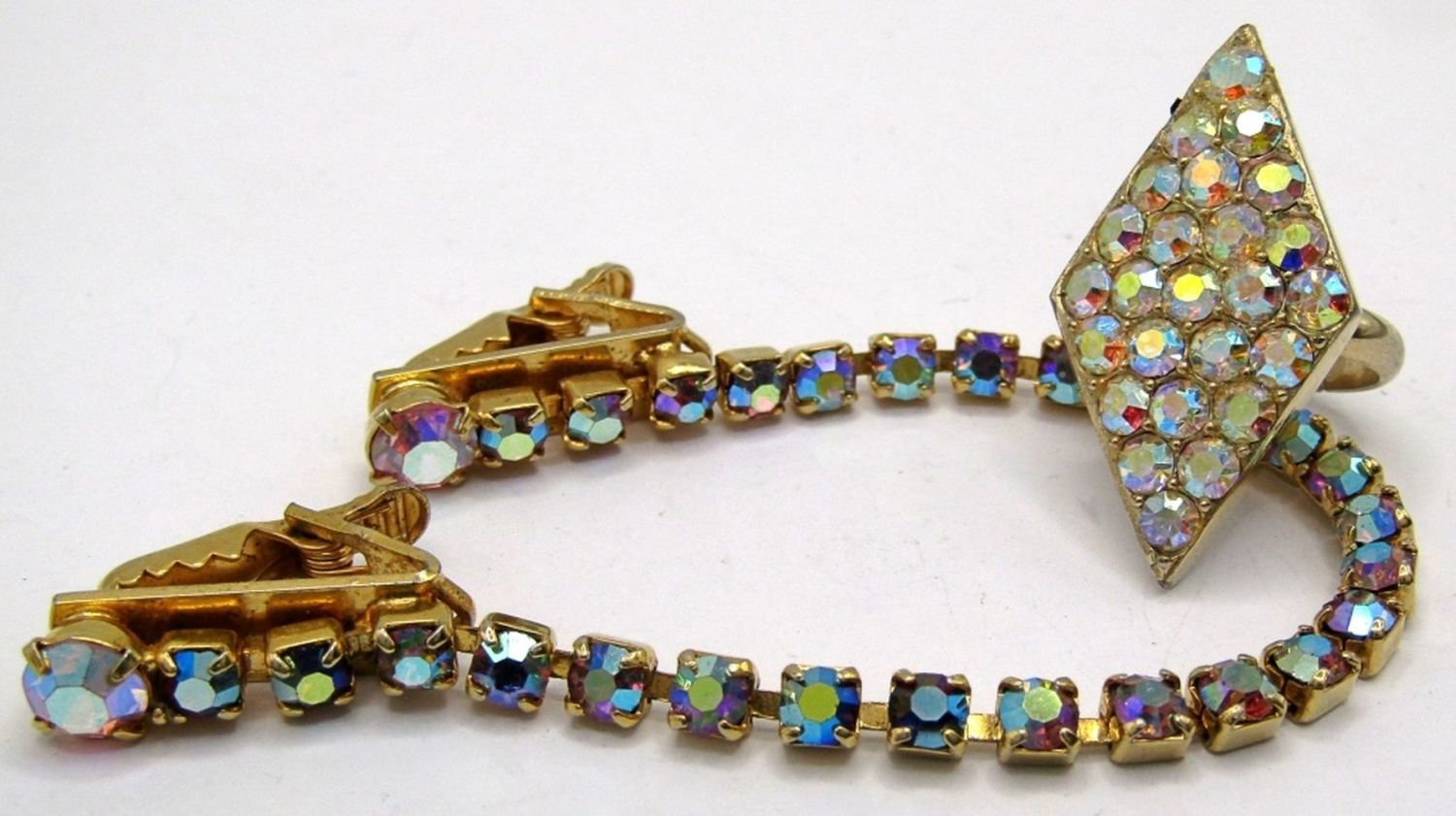 Ring is size 4 adjustable. Sweater clip measures 6.5 inches.