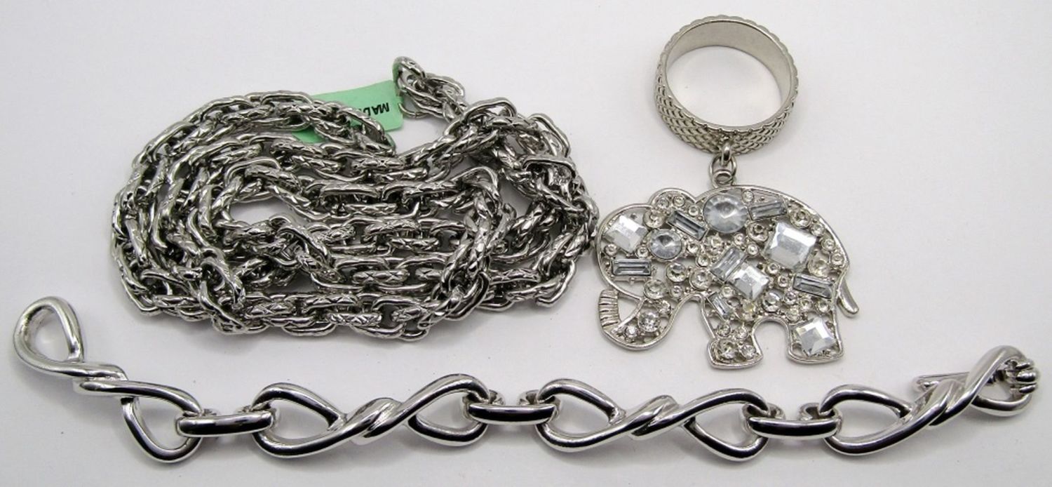 22 inch necklace, 8 inch bracelet, elephant pendant.