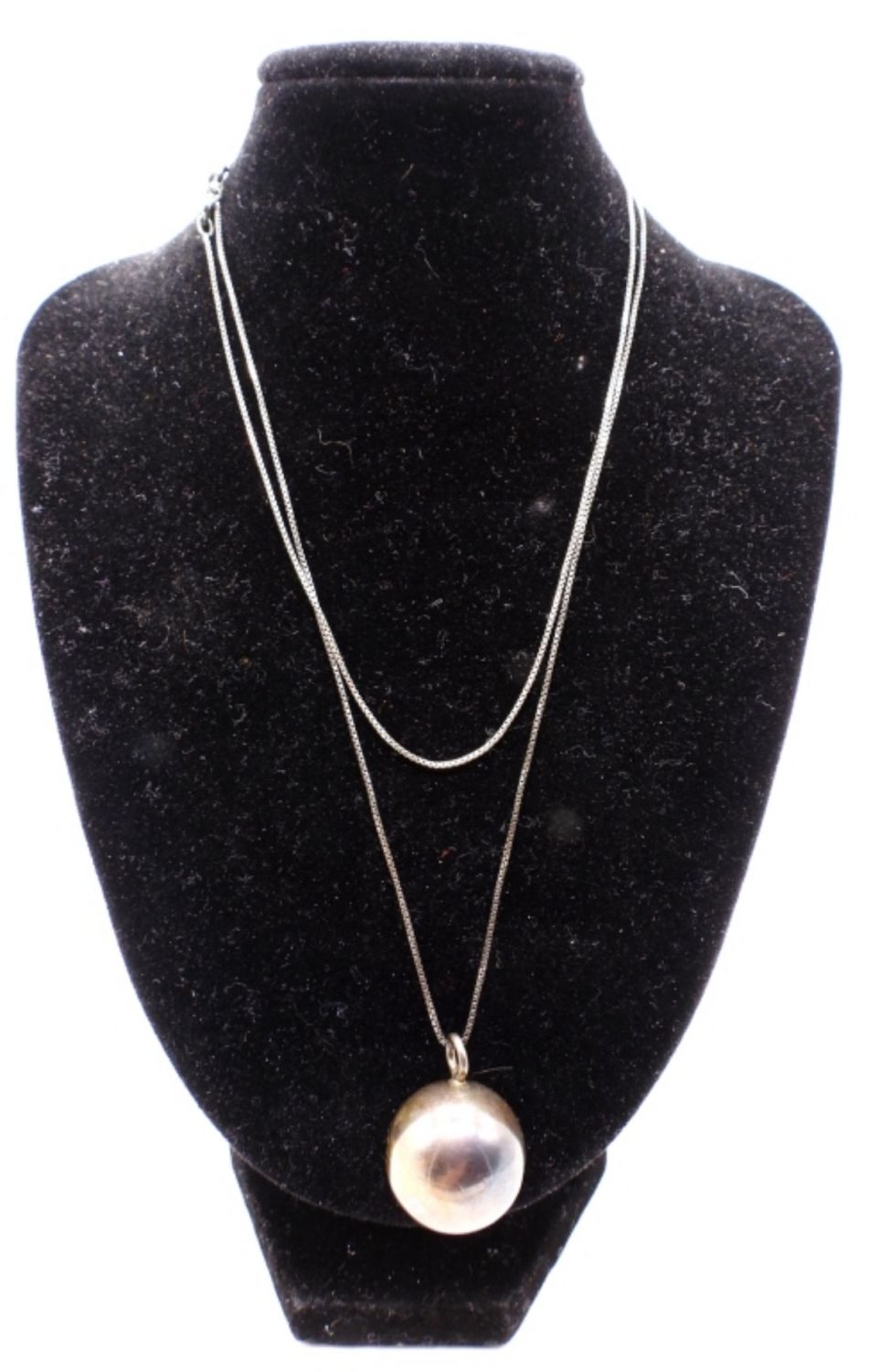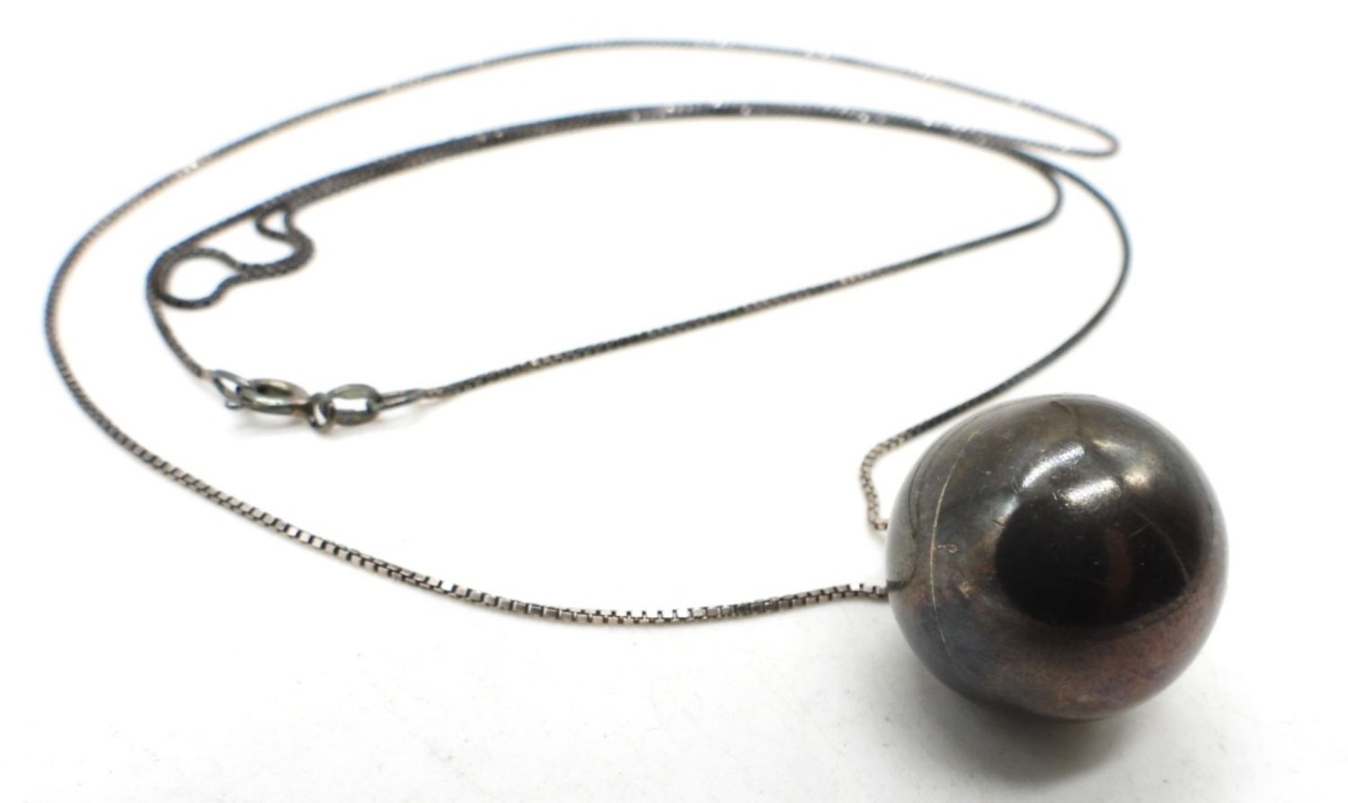 9DWT, 30″ LONG, BALL CHIMES, STAMPED 925 ON THE CHAIN BY THE CLASP
