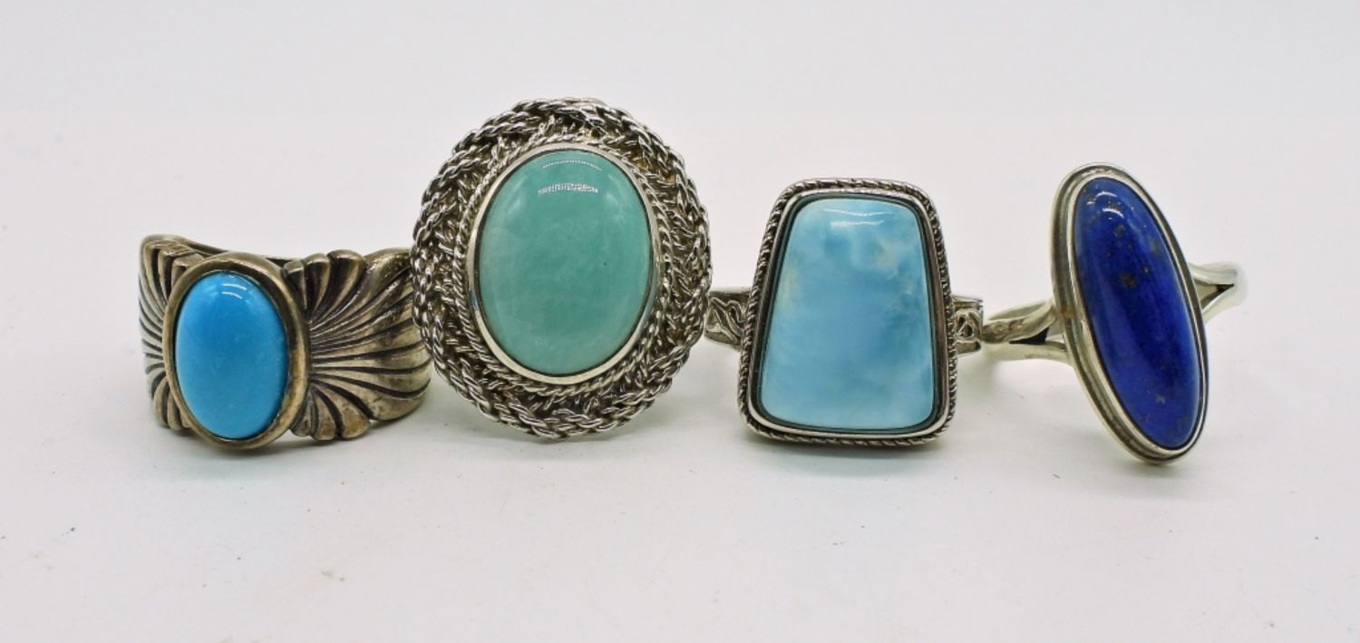 Various sizes 7-8. Vintage natural stone rings, turquoise, lapis lazuli, & amazonite. DWT 18.1