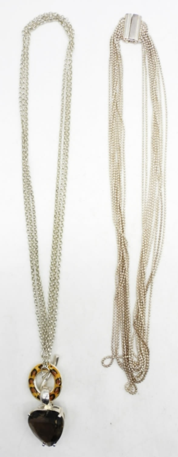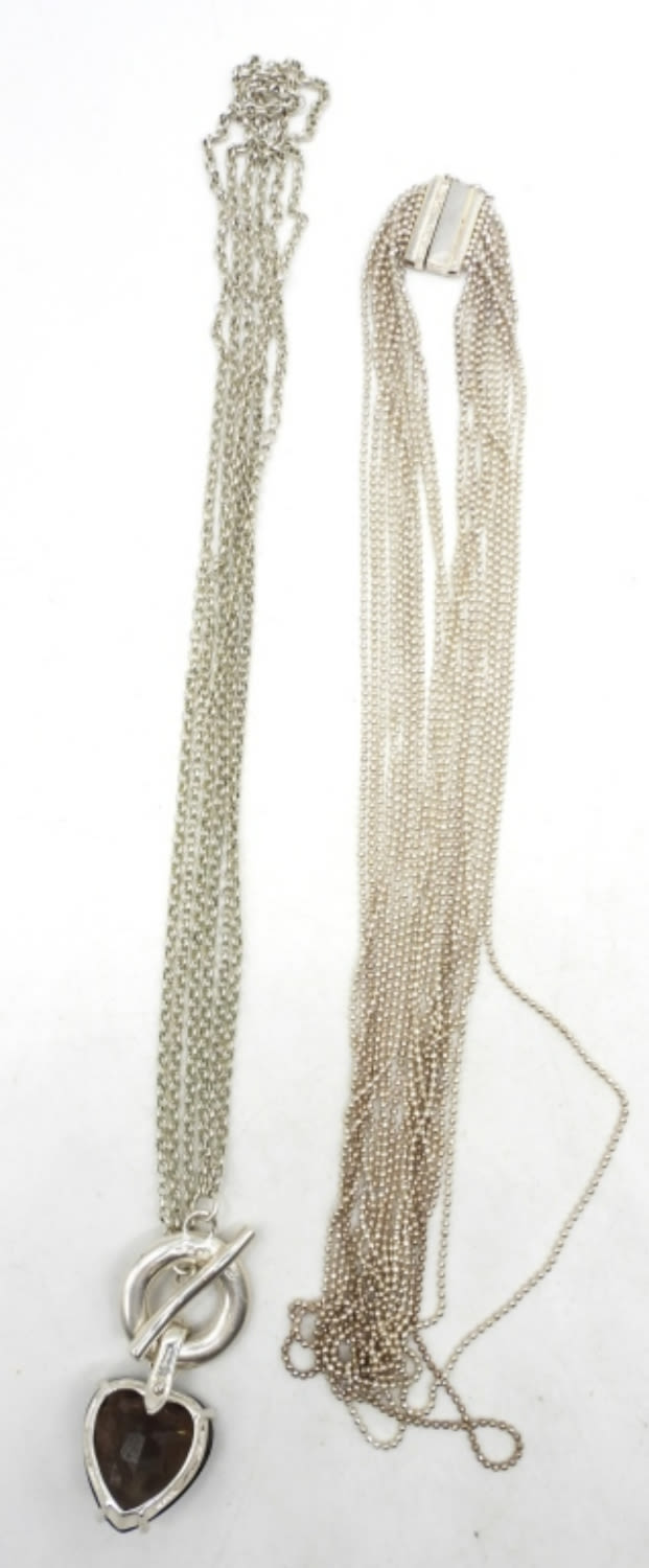 31DWT, 1- 16″LONG BALL CHAIN WITH SLIDE CLASP, 20″ long heart necklace with toggle clasp , both stamped 925