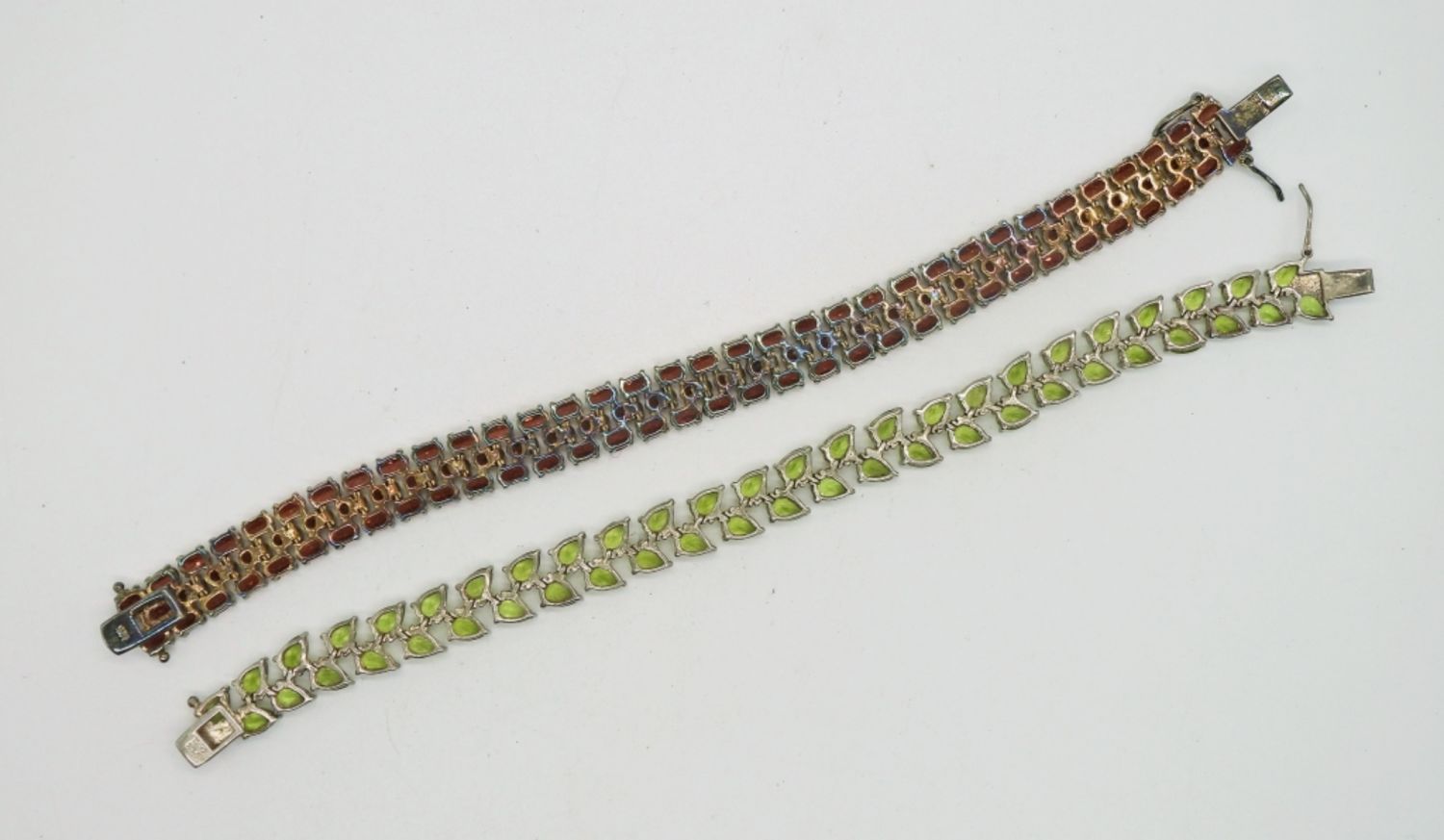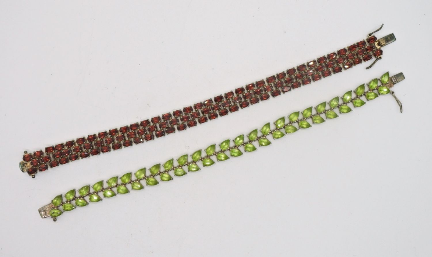 Garnet and Peridot 7 inches tennis bracelets. 925 Sterling. DWT 33.1