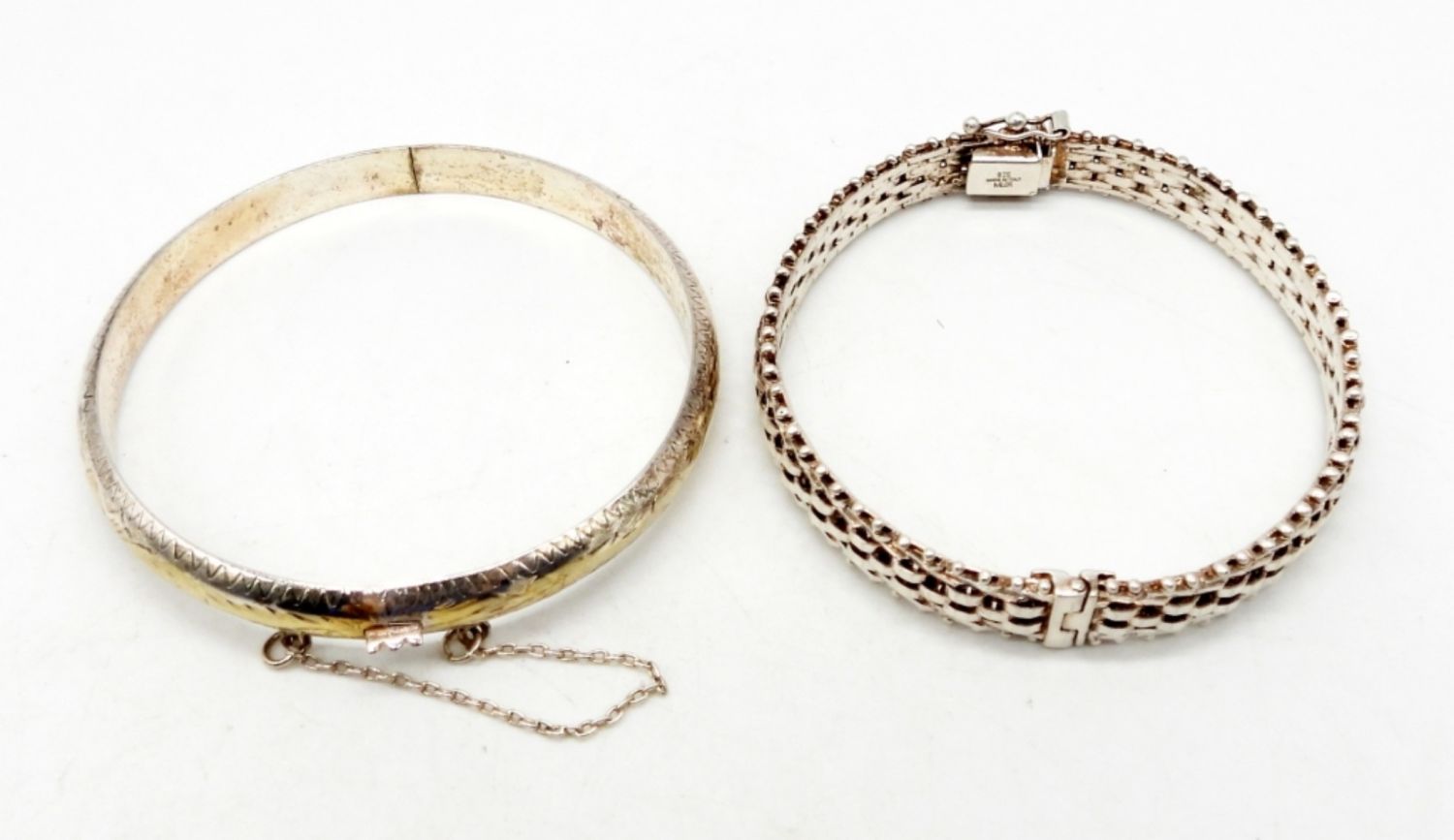 Two bangle bracelets with working clasps. 7 inches. DWT 19.9