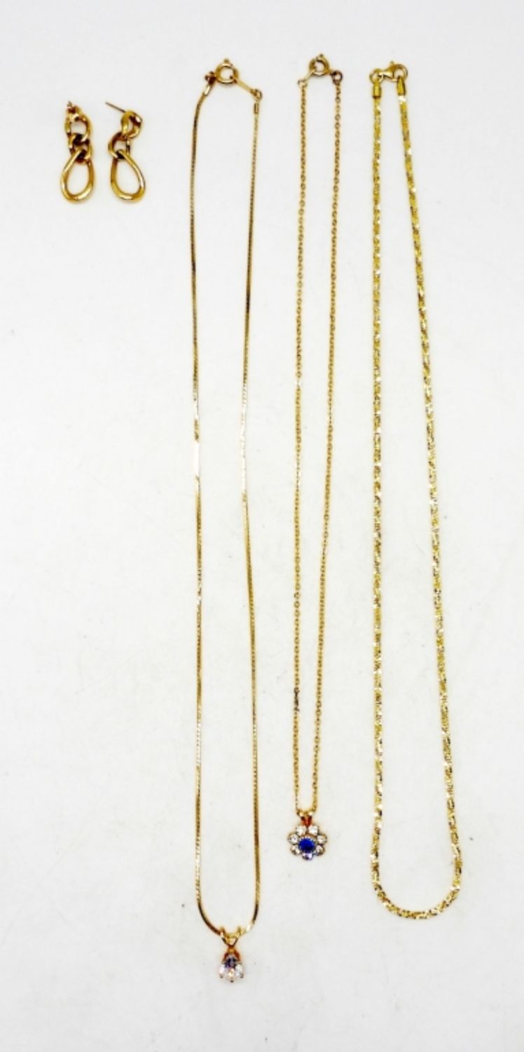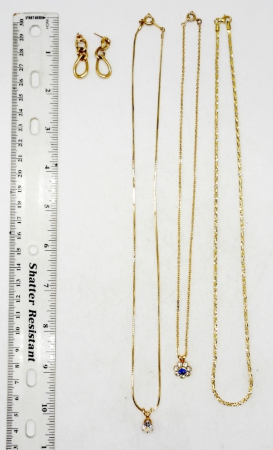 Three necklaces 16-18 inches, one pair of link earrings. DWT 9.2